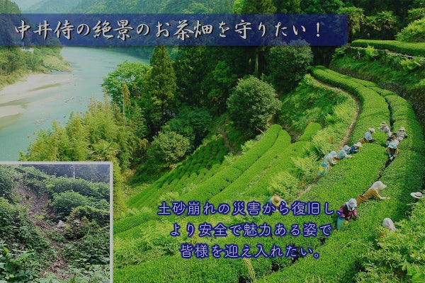 また、地主の羽田野七郎平さんが長年、情熱を注いできたお茶畑です。加えて、優れた景観に加え長野県内で最初に茶摘みが始まる場所であるため、メディアにもたくさん取り上げられ、中井侍の茶畑の顔ともいえる場所でもあり、広く親しまれています。そんな大切な場所の土砂崩れを直し、守りたいと思いました。