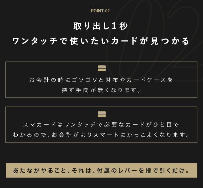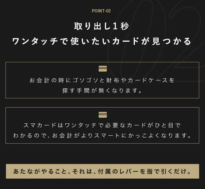カードが段々で出てきますので、時間をかけずに目的のカードを見つけることができます。