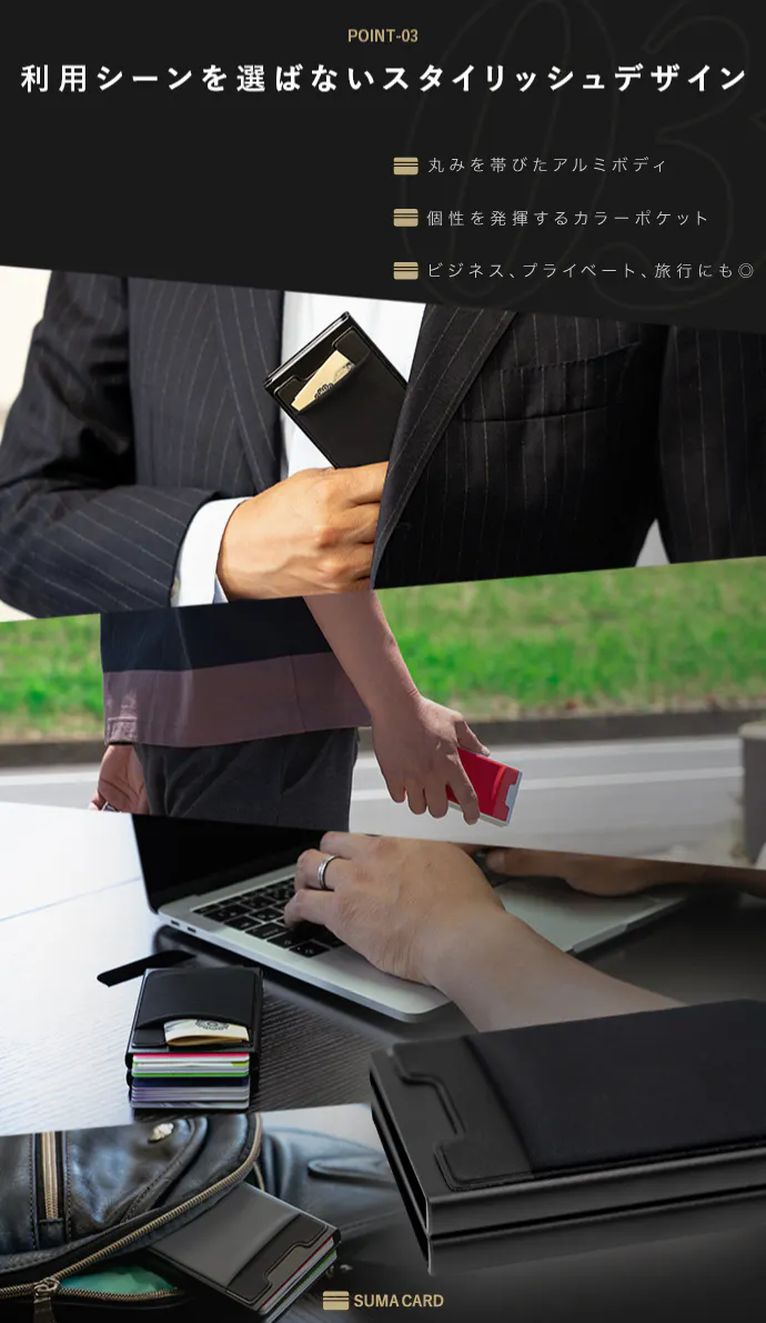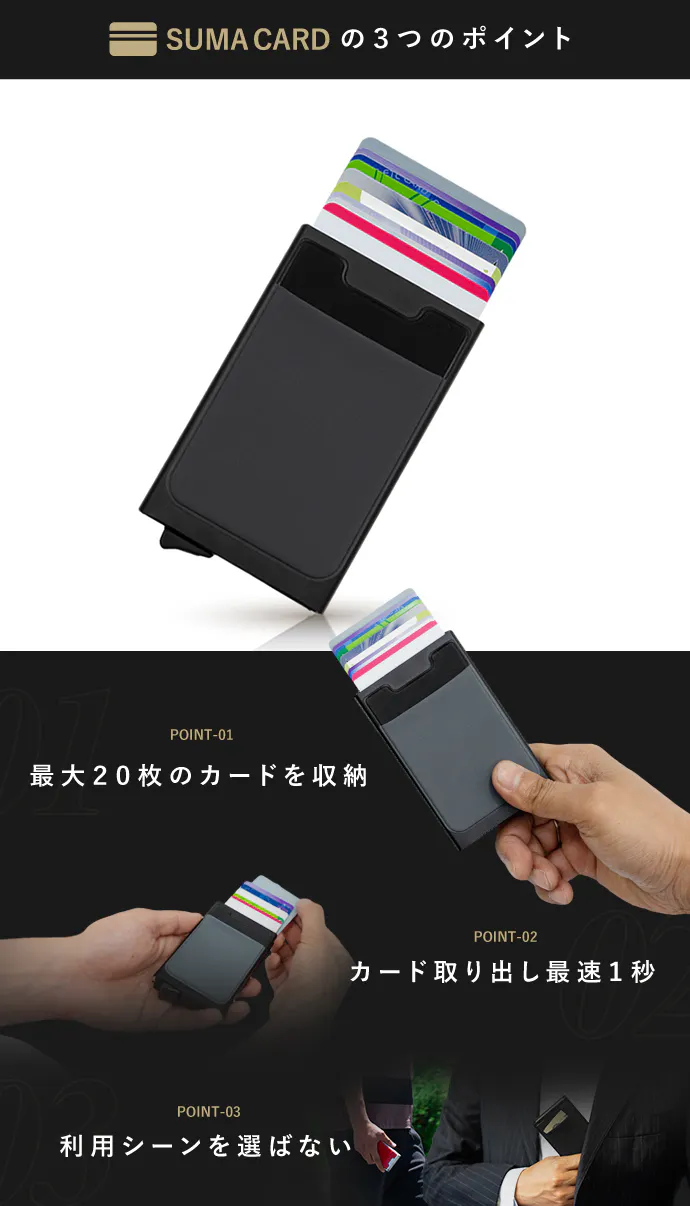 カード専用( 85.60 × 53.98 mm)に設計されておりますので、日本の一般的な名刺には適しておりません。