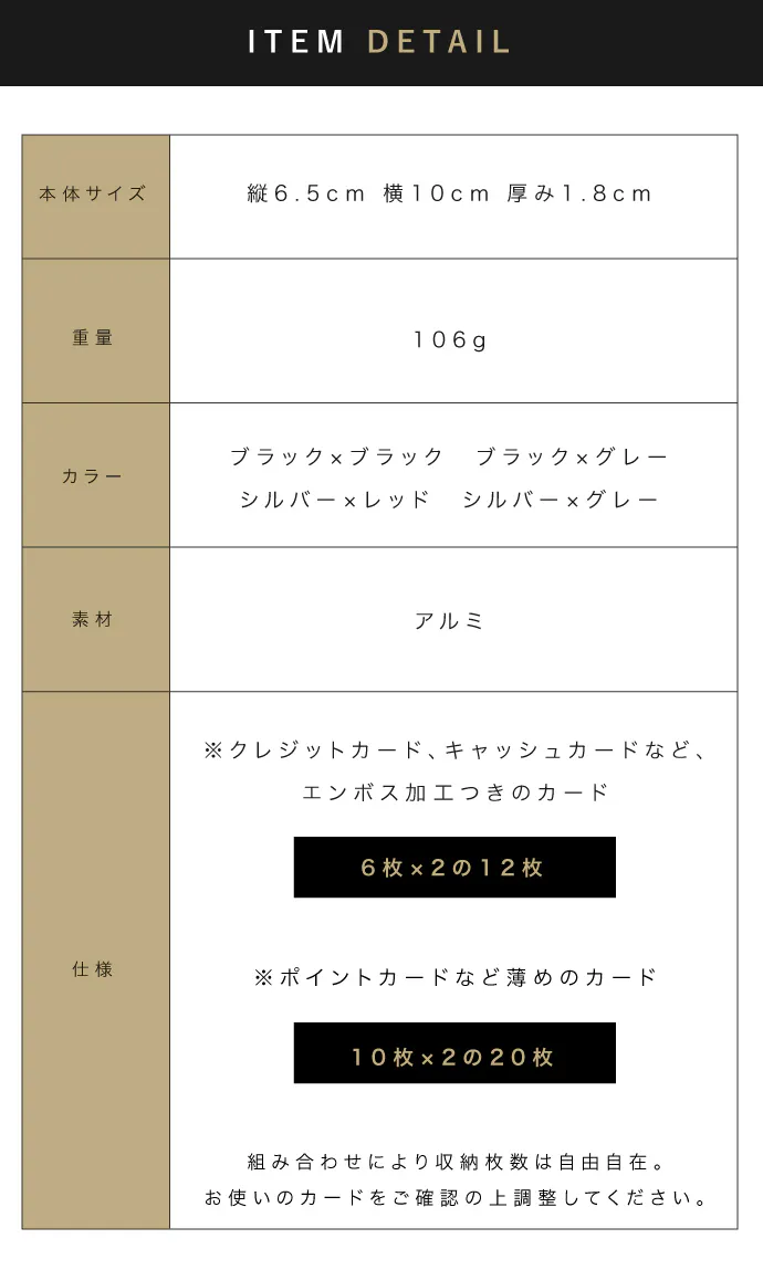 ※一般的なクレジットカードの場合は、6枚×2セクション=12枚が目安になります。