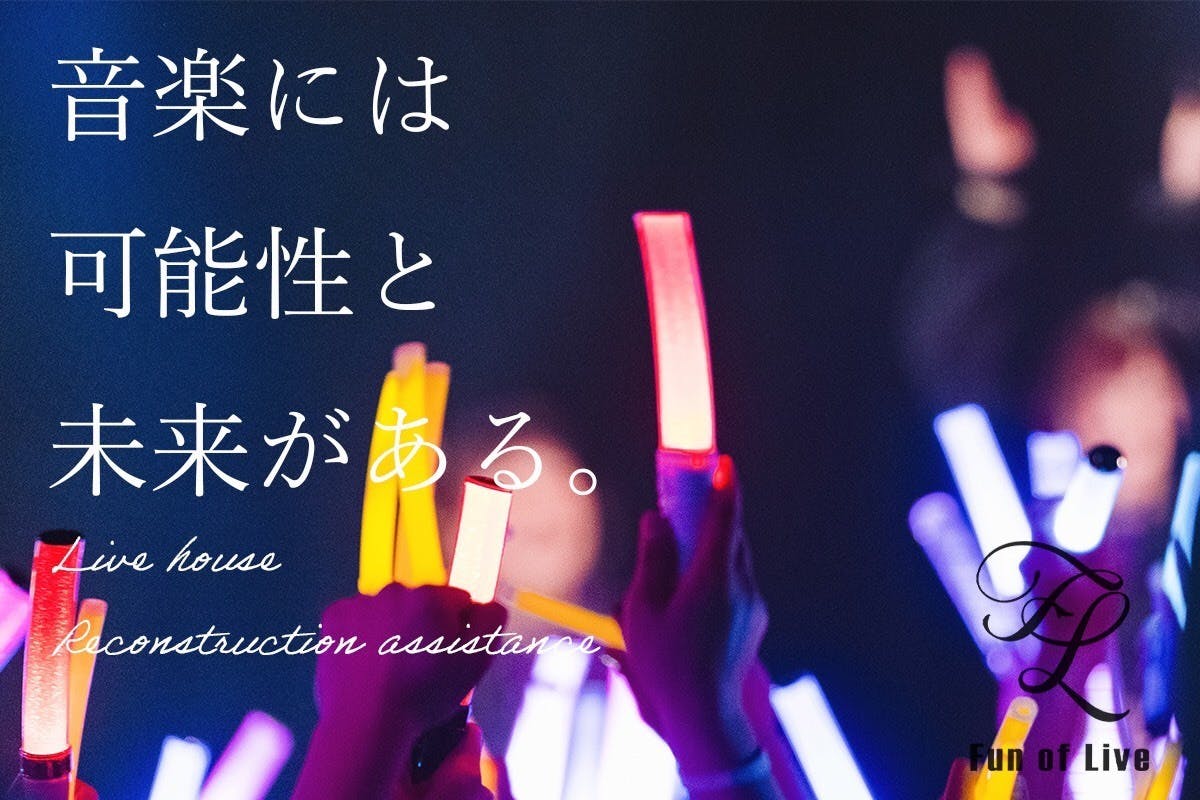 アーティストやライブハウス等を支援する活動を行ってきた我々Fun of Liveの活動継続や法人化、また、