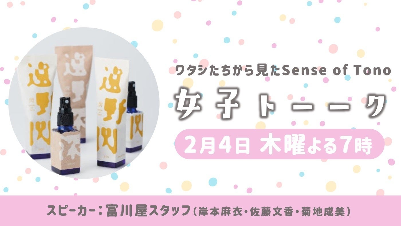 富川屋はSense of Tonoの誕生を記念し、様々な分野でご活躍される方をゲストに招いてオンライントークイベントを開催しています。(イベントは全4回。次回は2/16(火)19:00から行います。ゲストは、福岡八女にある地域文化商社「株式会社うなぎの寝床」代表・白水高広さんと、焼き物の町・有田にある「日用品店bowl」店長・高塚裕子さんです。)