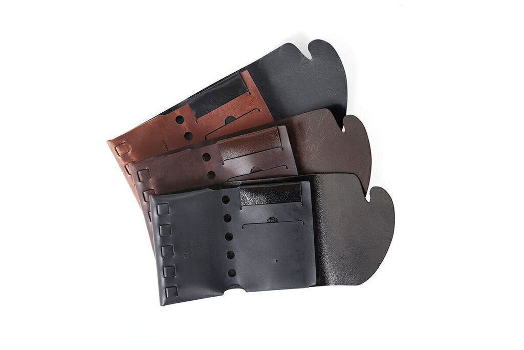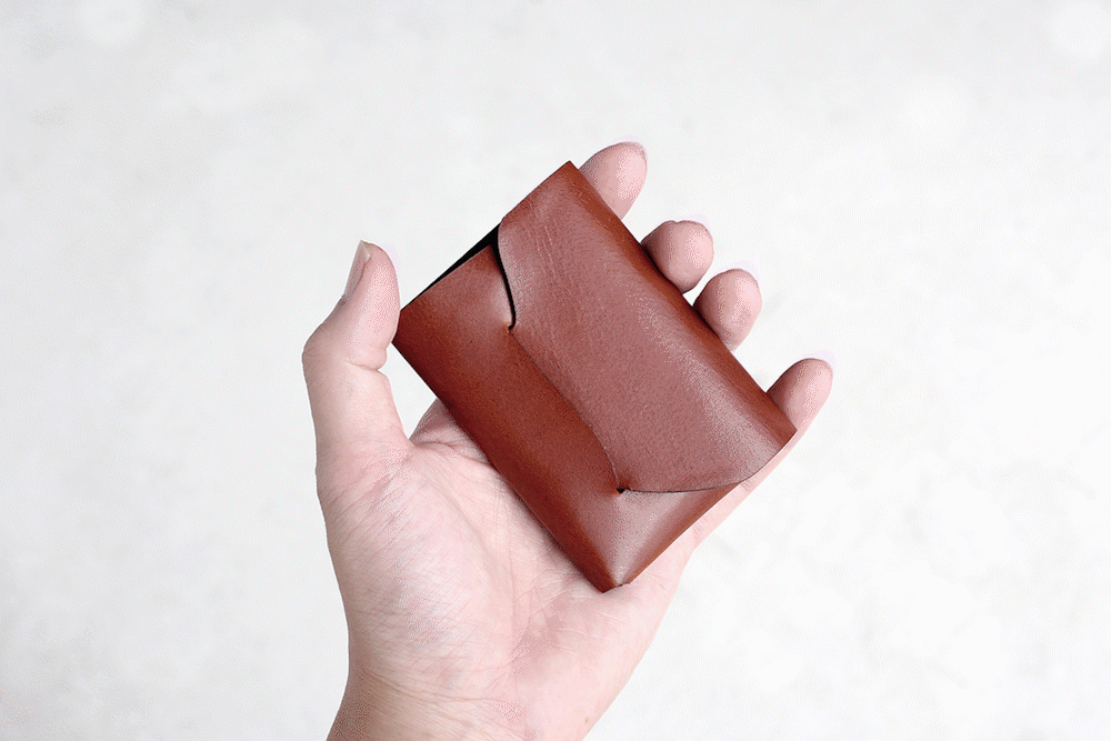 新型である所作cpは1枚の革のみで構成。ネジも金具もありません。