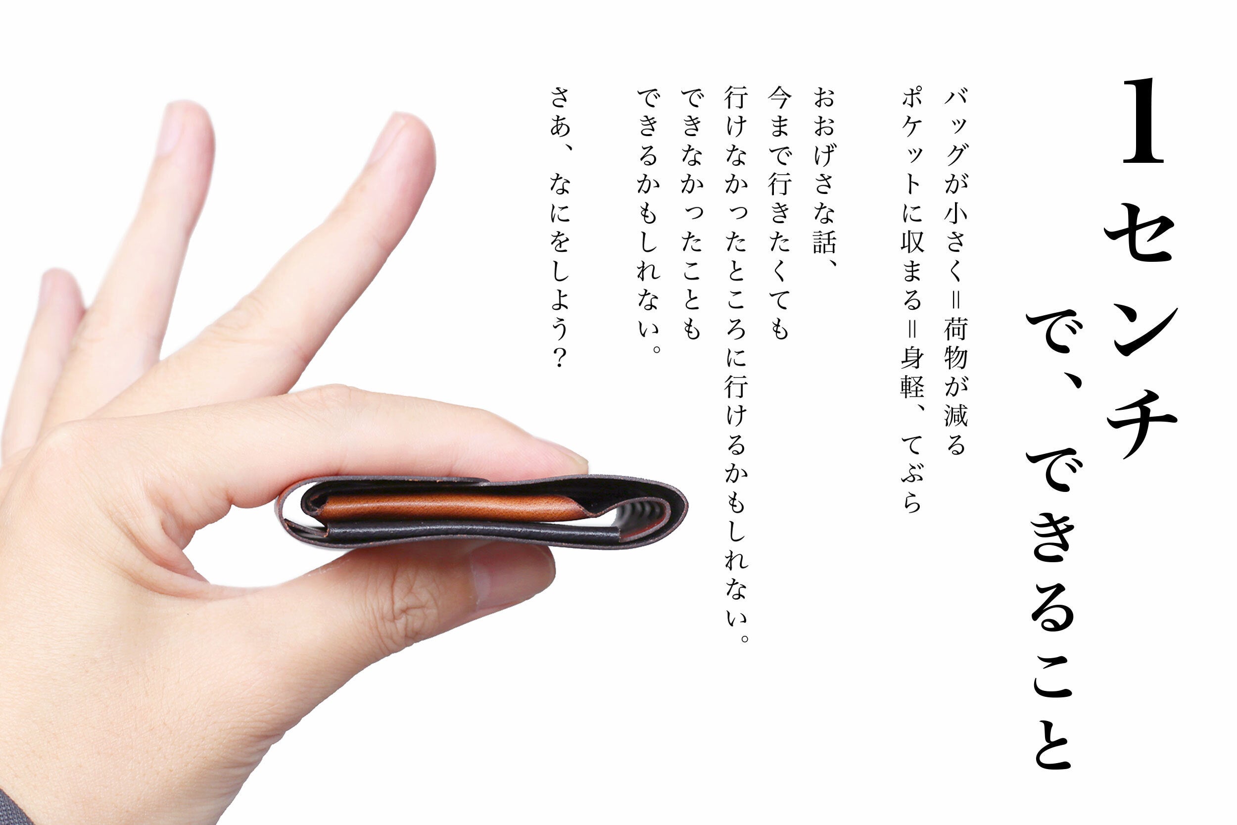 必要最低限を持ち歩ける、つかうひと・見るひとにとって気持ちよい、かつ所作らしいキャッシュレス時代のコンパクト(cp)ウォレットです。