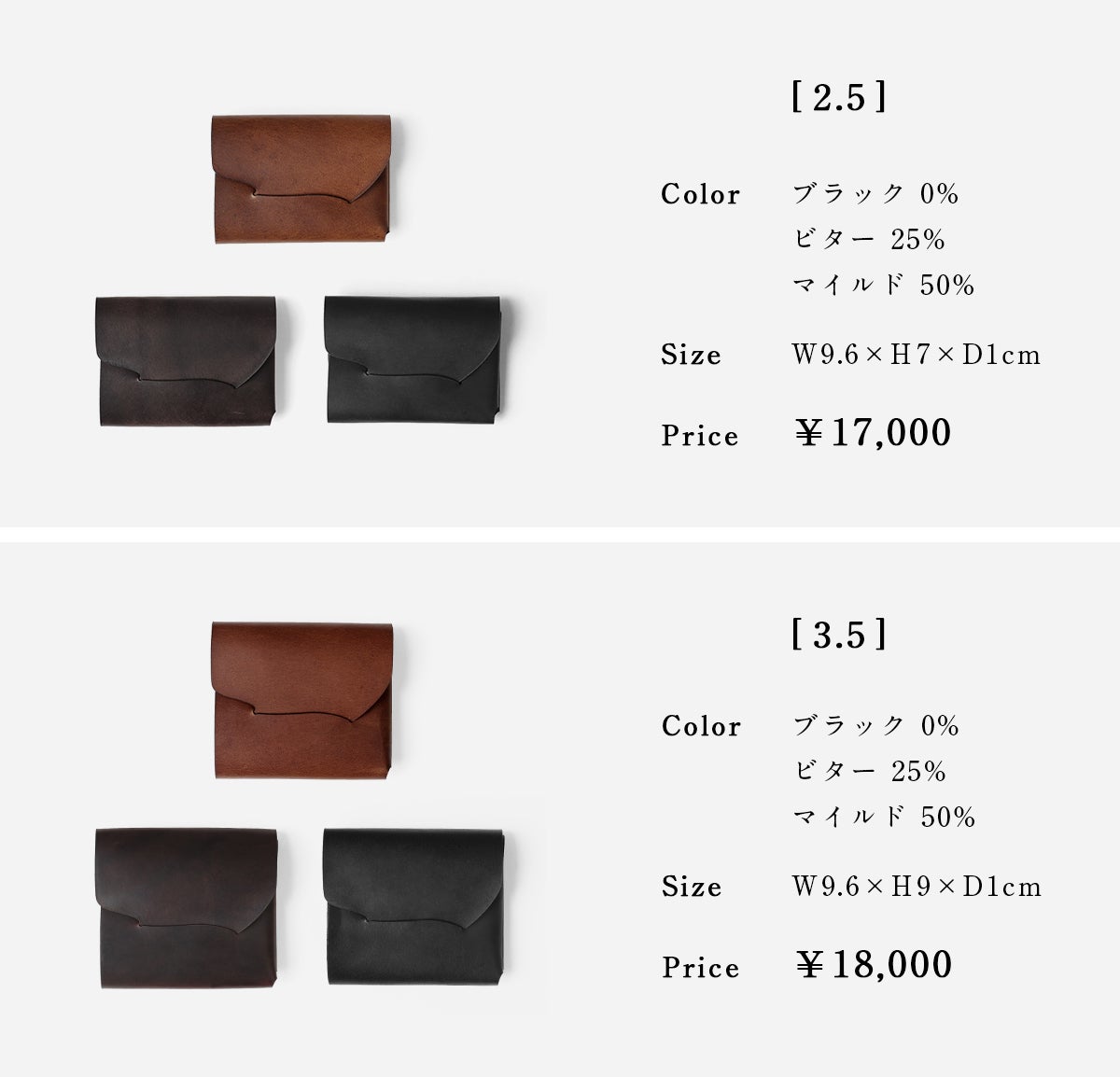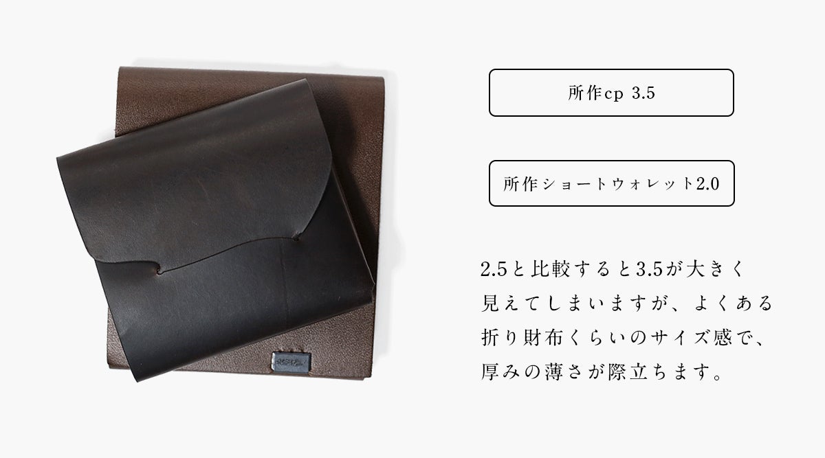 ※サイズ3.5(2サイズの大きい方)はお札が隠れて収納でき、2.5の約1.5倍の容量をカバーできます
