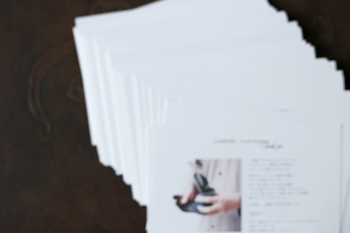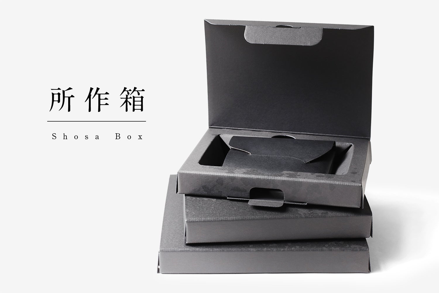 所作のコンセプトである“一枚革”と同じく“一枚紙”で出来ている所作箱に入れてお届けいたします。