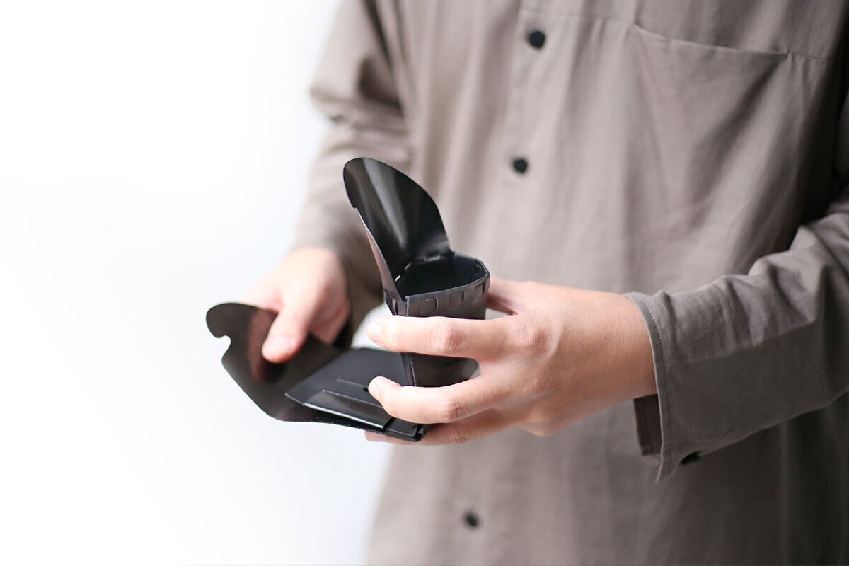 “お金を包む”動作自体を所作としてデザインし、人が使うことで完成する財布。