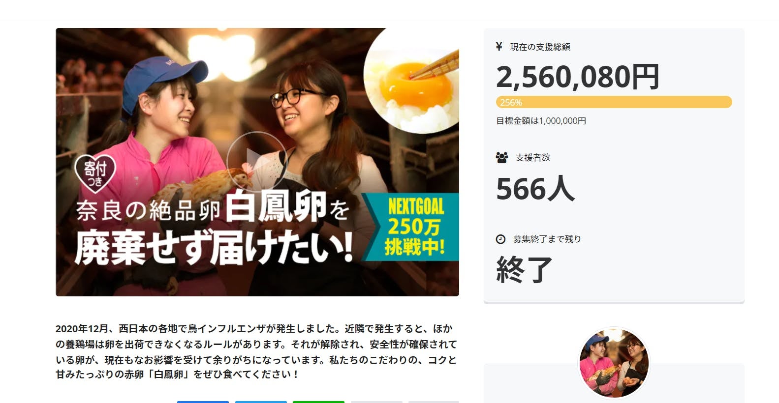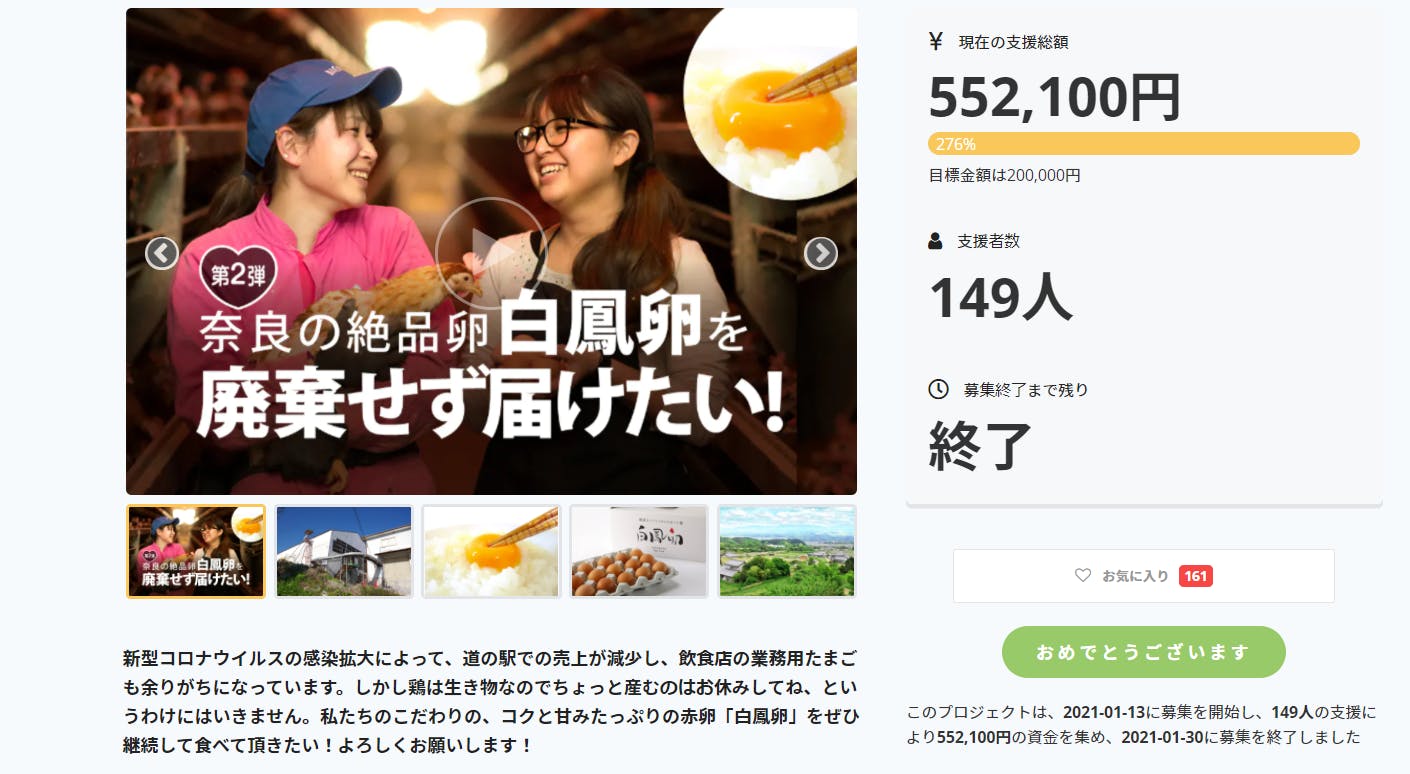 ①2020/12/30 終了【近隣で鳥インフルエンザが発生。毎日1万個産まれる絶品卵を廃棄せず届けたい】