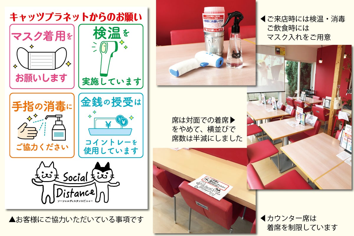 休業の間、新型コロナウイルスの収束が見えない状況で、廃業の検討をせざるを得ない状況の中、国や県からの支援金申請をし取得後、新型コロナウイルス感染拡大防止対策の準備をし、6月2日再開することができました。しかし、席数の半減、ねこの部屋の人数制限、営業時間の短縮などの状況は苦しく再開後の売上減少は非常に厳しい状況に至っております。このままお客様が半減したまま続ければ店舗の継続が困難に陥ってしまうのも時間の問題になって参りました。