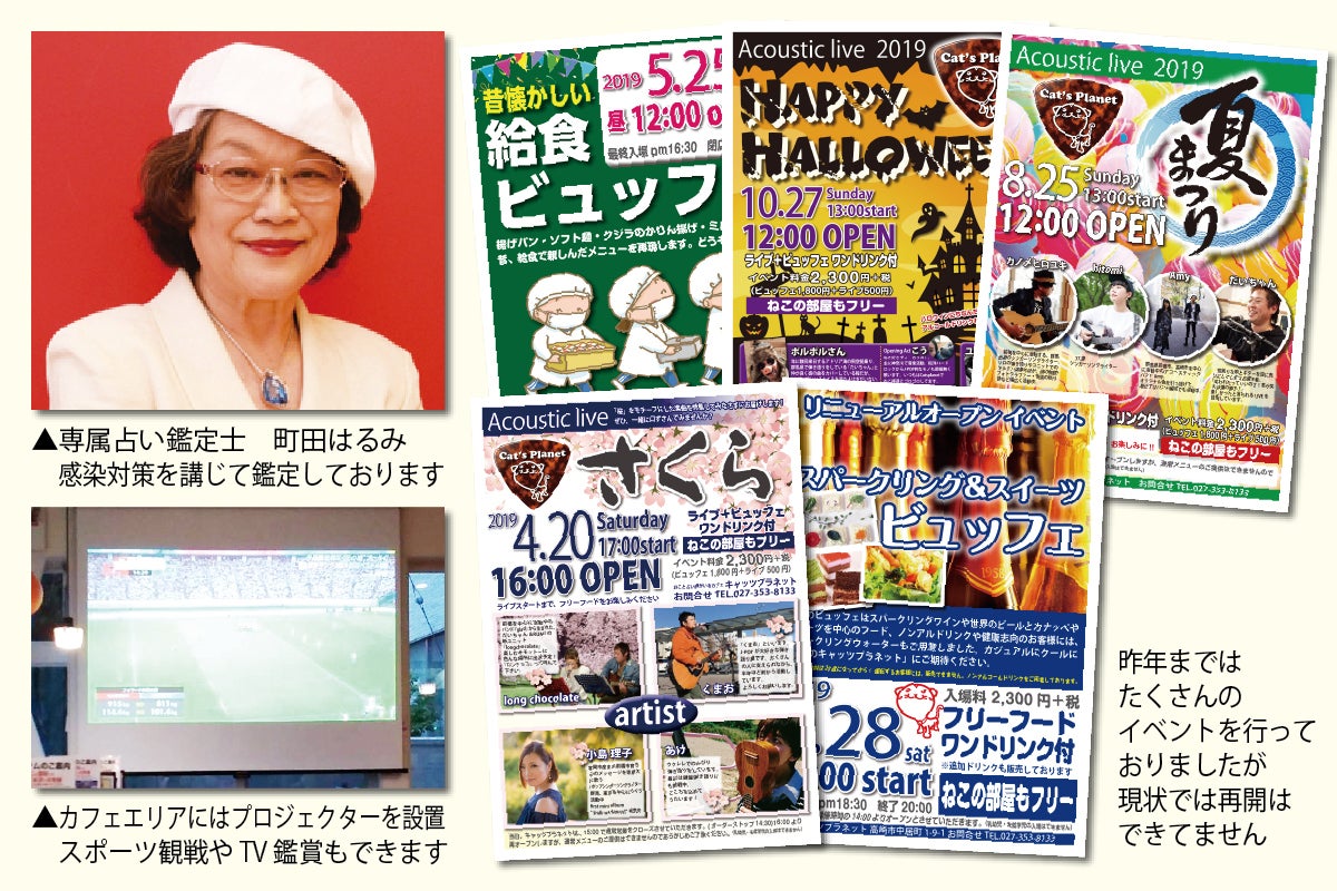 ここ群馬県でも新型コロナウイルスの影響により緊急事態宣言が4月17日に発令され、飲食店としては短縮営業ができるものの、ねこの部屋と占い鑑定は遊興施設との事で休業を余儀なくされました。ただいつ休業期間が終わるのかわからないままねこスタッフの飼育や管理、医療費を少しでも捻出するために、カフェメニューからテイクアウトやデリバリー販売を行いました。また、弊店のお客様にはねこスタッフへの沢山のご支援をいただき、ねこスタッフの健康管理は休業中問題なく生活させることができました。ご支援いただきましたお客様には感謝御礼申し上げます。