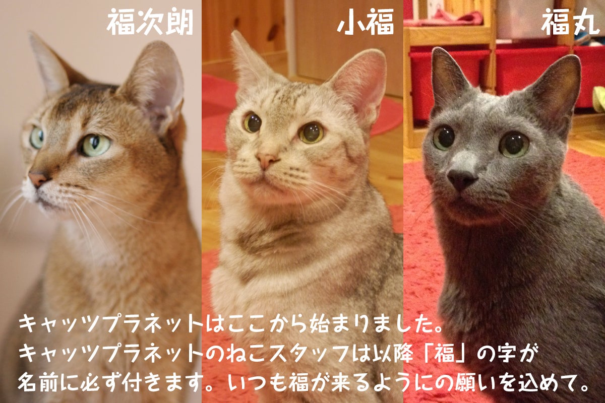 私達夫婦は自宅で3匹の猫を育て、その生活はとても楽しく猫達に癒され充実した毎日を過ごしておりました。そんな生活の中で、1匹の猫が一生背負っていかなければならない病気になり私達夫婦は長生きしてもらいたい一心で、猫の闘病生活を始め、食事・投薬・排泄管理などできることは全て夫婦で行っておりました。そんな中、夫が2009年のリーマンショックの影響で勤め先より解雇宣告。次の仕事を探す過程で、夫も目の障害を抱えながらの再就職は厳しいと感じ、それでは自分達で仕事を作ろうと至ってキャッツプラネットを立ち上げました。群馬県で初めての試みでしたので、保健所や建築会社等と一緒に手探りで創り上げていきました。