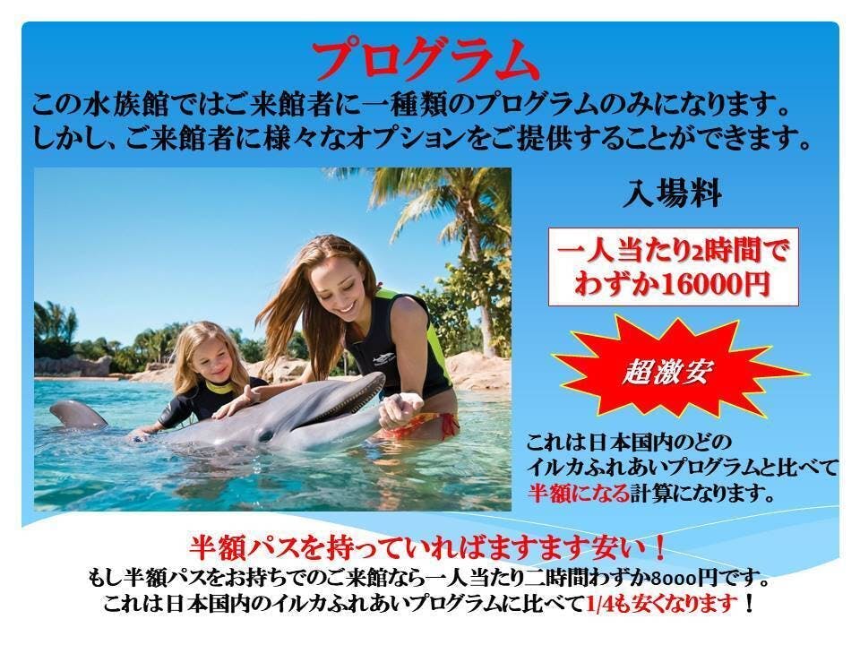その代わり、この水族館ではより良いサービスをより低い金額で提供いたします。もし一日中イルカと遊べて、それも気軽に行ける場所があるなら素晴らしいとは思いませんか?