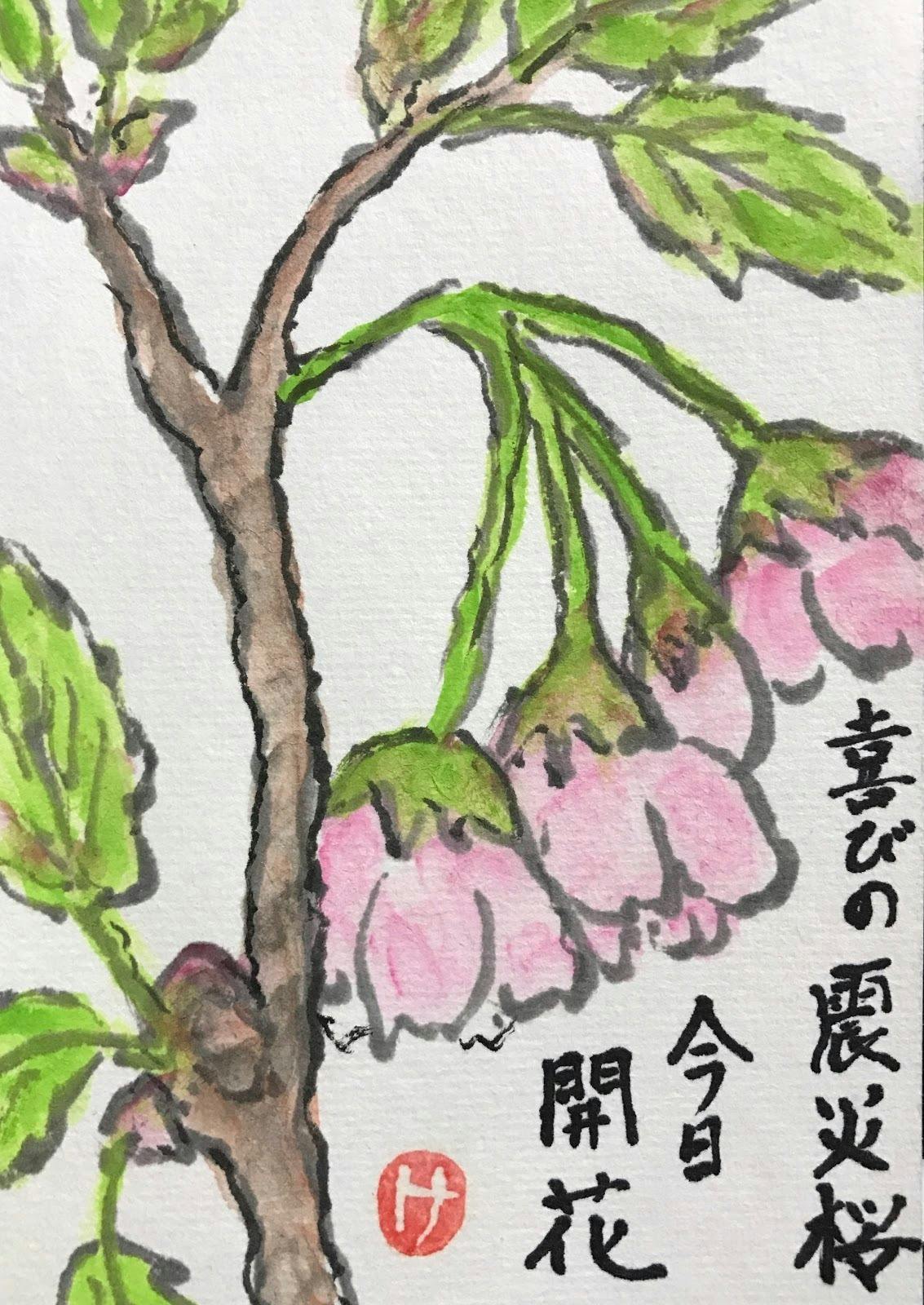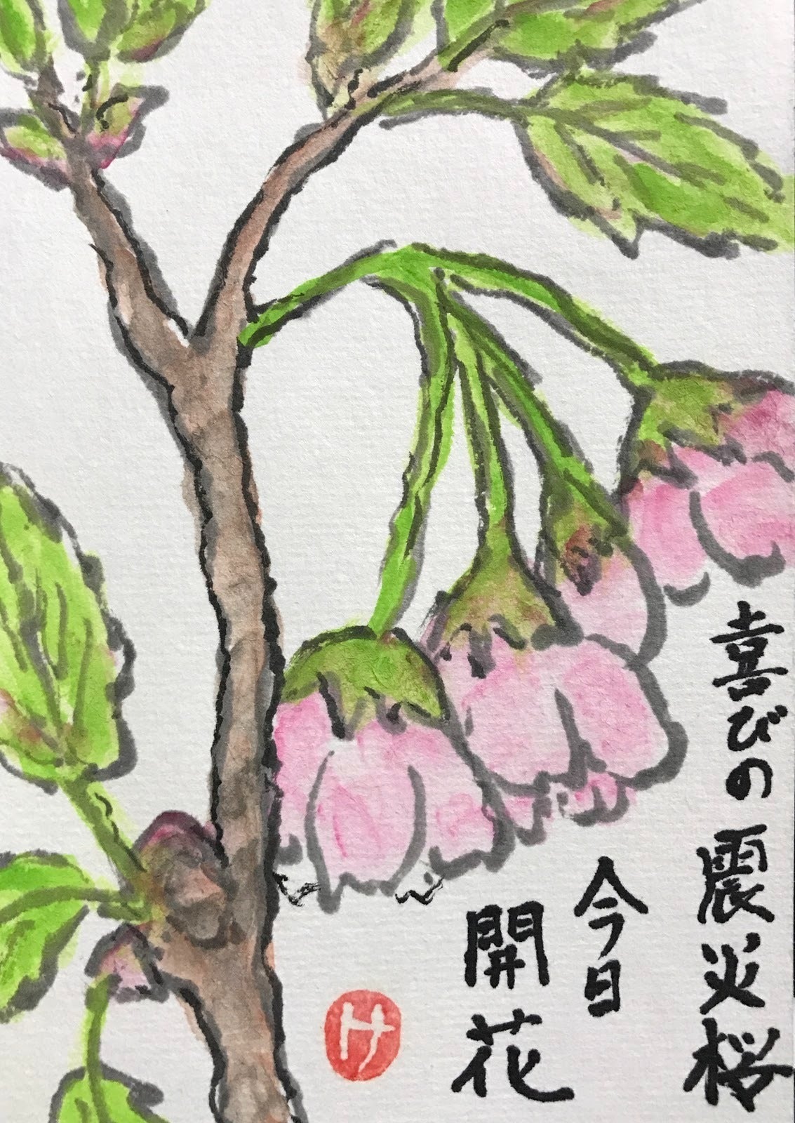 また、植樹活動を初めて4年後、石巻市復興住宅にお住まいの女性から「桜が咲きましたよ」と絵手紙を頂きました。
