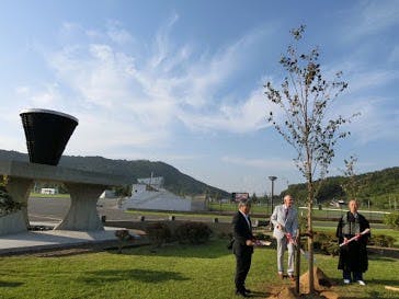 仮設の方々と一緒に手を合わせ植樹していた時、