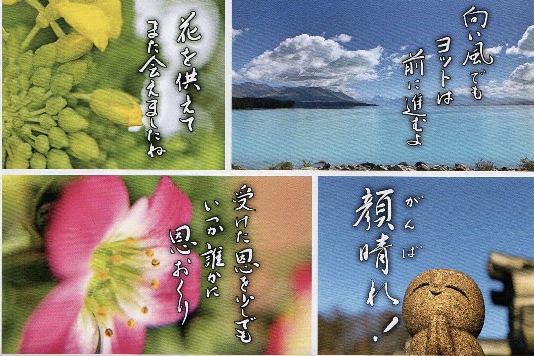 そして、この花の写真と言葉ヂカラをカレンダーにして、年末に災害地の仮設住宅に届けています。