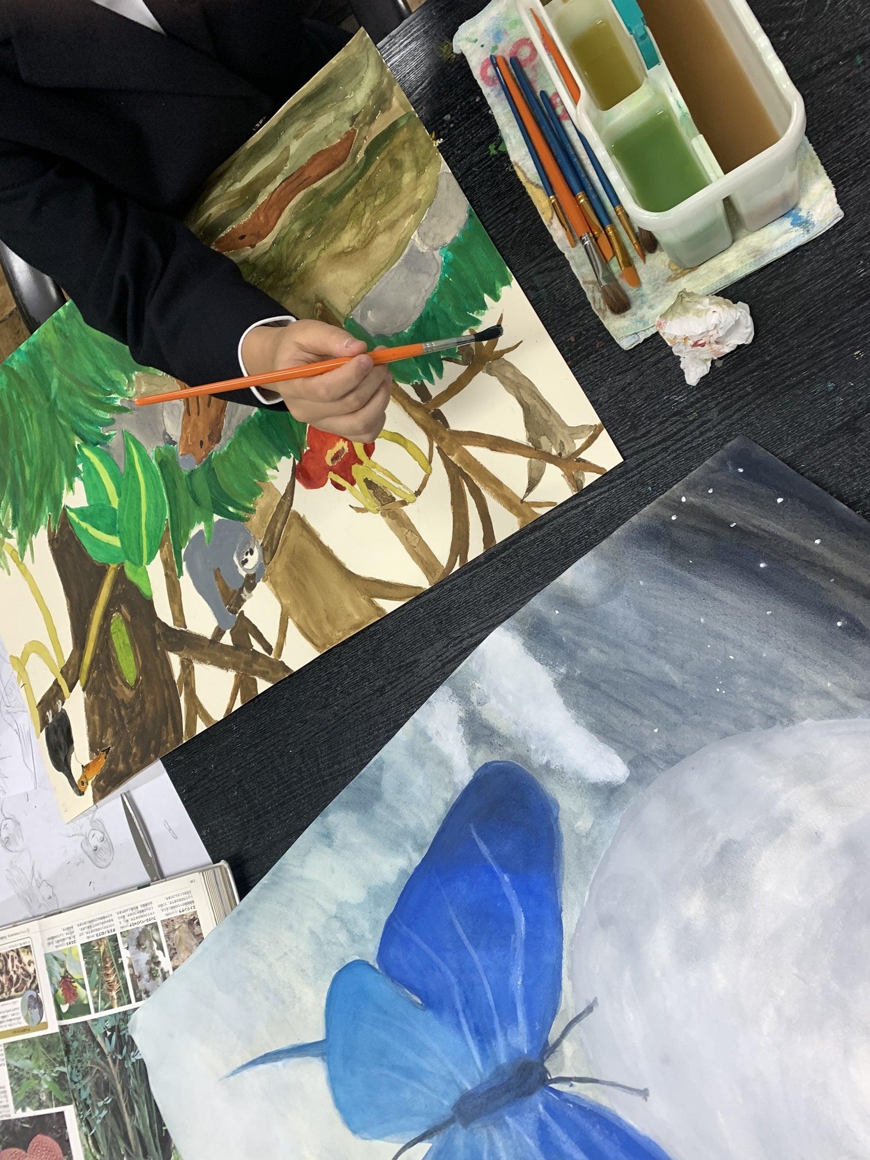中級部は佐藤太清中学生美術展の制作を行っています。