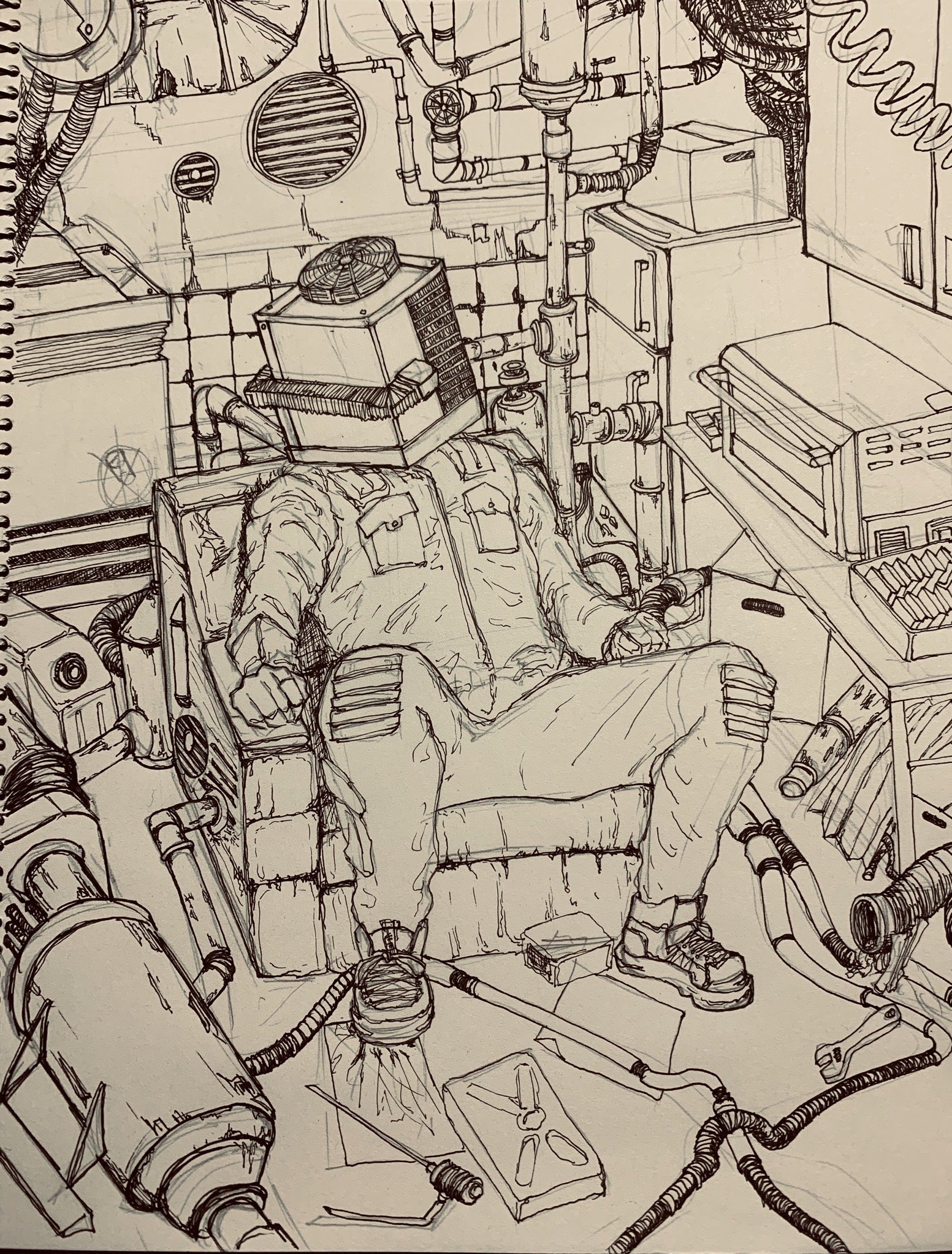 そんな中、彼aircon-manは頭がエアコンになっていて、その頭で体温調節と空気清浄を行えます。つまり、屋外で活動できるのです。そして、今回のジオラマ作品では、彼の自宅と彼自身を制作して、パフォーマンスとして彼の生活ぶりを来場者さんに覗いてもらいます。彼は普段何を思い、何をしてるのか。一体どんな生活を送っているのか。気になりますよね。