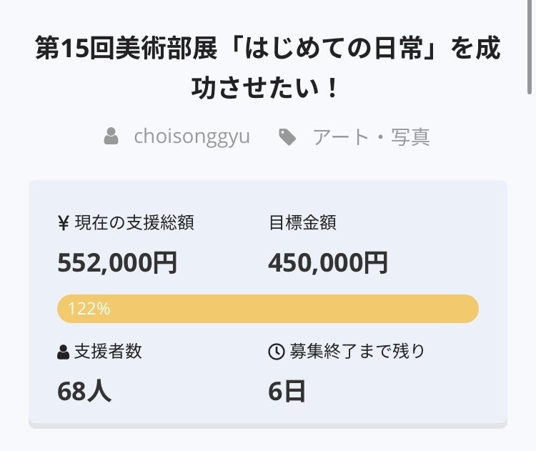 現時点での支援総額は55万2000円と目標金額を遥かに上回っています。