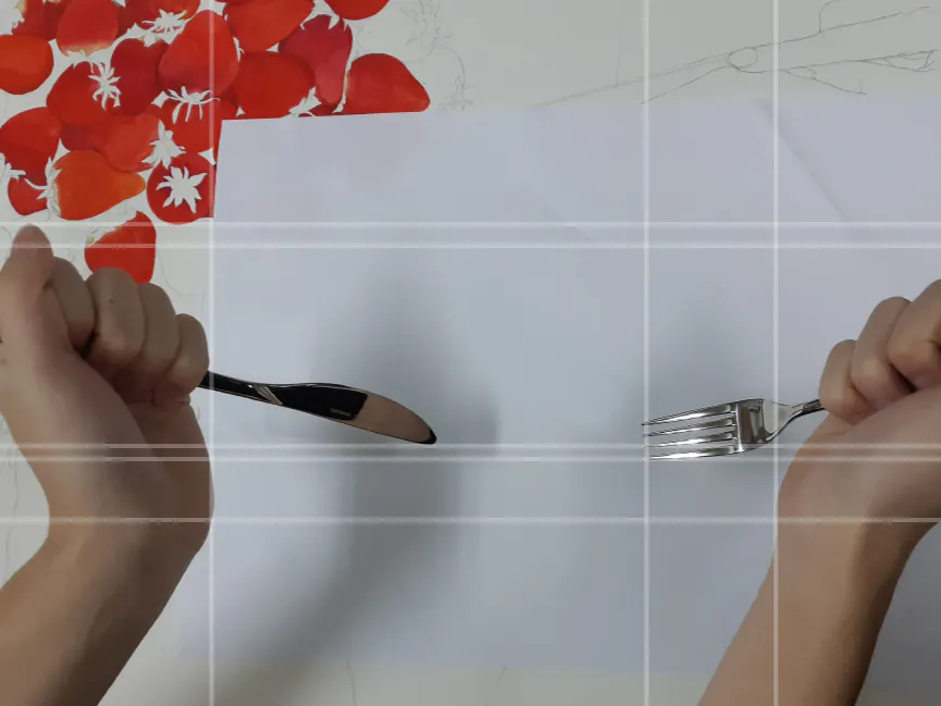 写真は数週間前にとった作品の手のモデルです。チラッと製作途中のいちごが映ってますね。