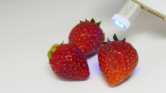UVライトの殺菌は、アルコールや薬剤での殺菌とは違い紫外線殺菌は残留物が残らず、対象物への影響もなく、環境にやさしいとされています。そのため食品や日用品を殺菌するのに安全な方法だと考えられていて、例えば果物・野菜などの食品の表面除菌もできるのです。