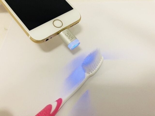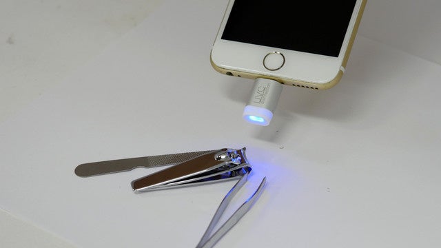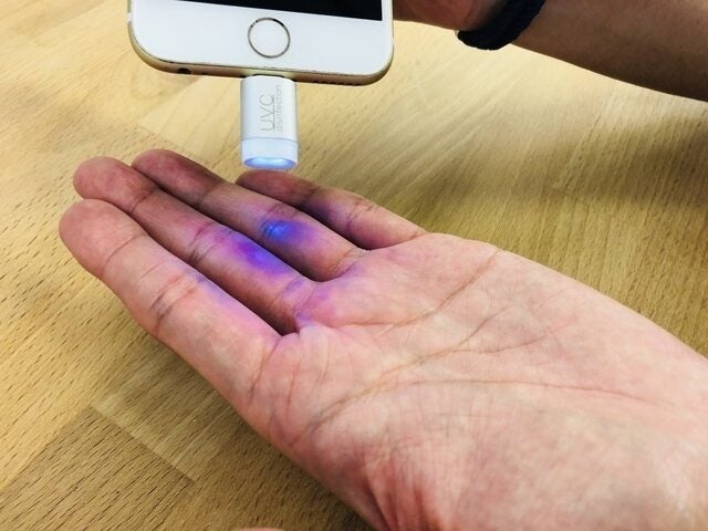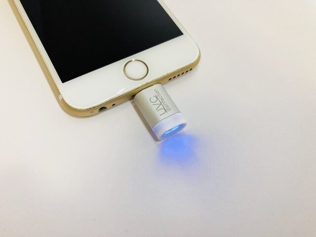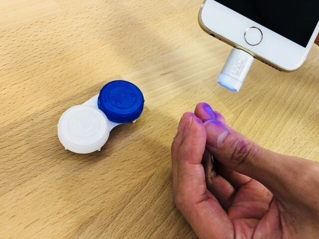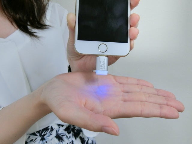 スマホに接続して、UVライトを気になる箇所にあてるだけ。5秒で99%スマート除菌。これだけです。