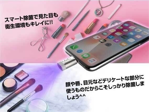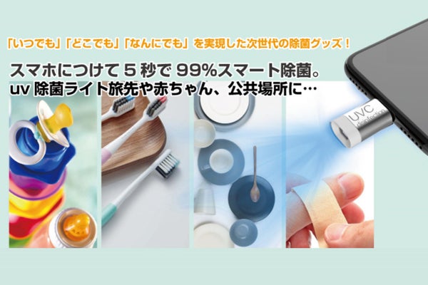 この商品は”次世代の除菌グッズ”です。「いつでも」「どこでも」「なんにでも」スマホに接続するだけでスマートに瞬間除菌ができます。