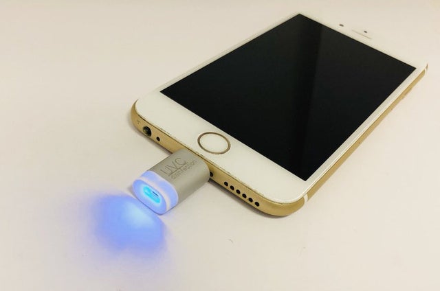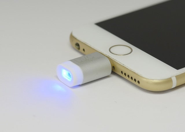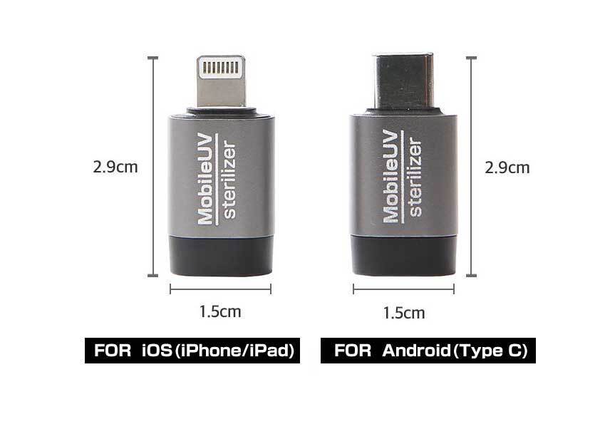 A4 スマート除菌ライトはiPhoneとアンドロイドのプラグに対応しているので、コネクターを使用すれば発光し利用可能です。