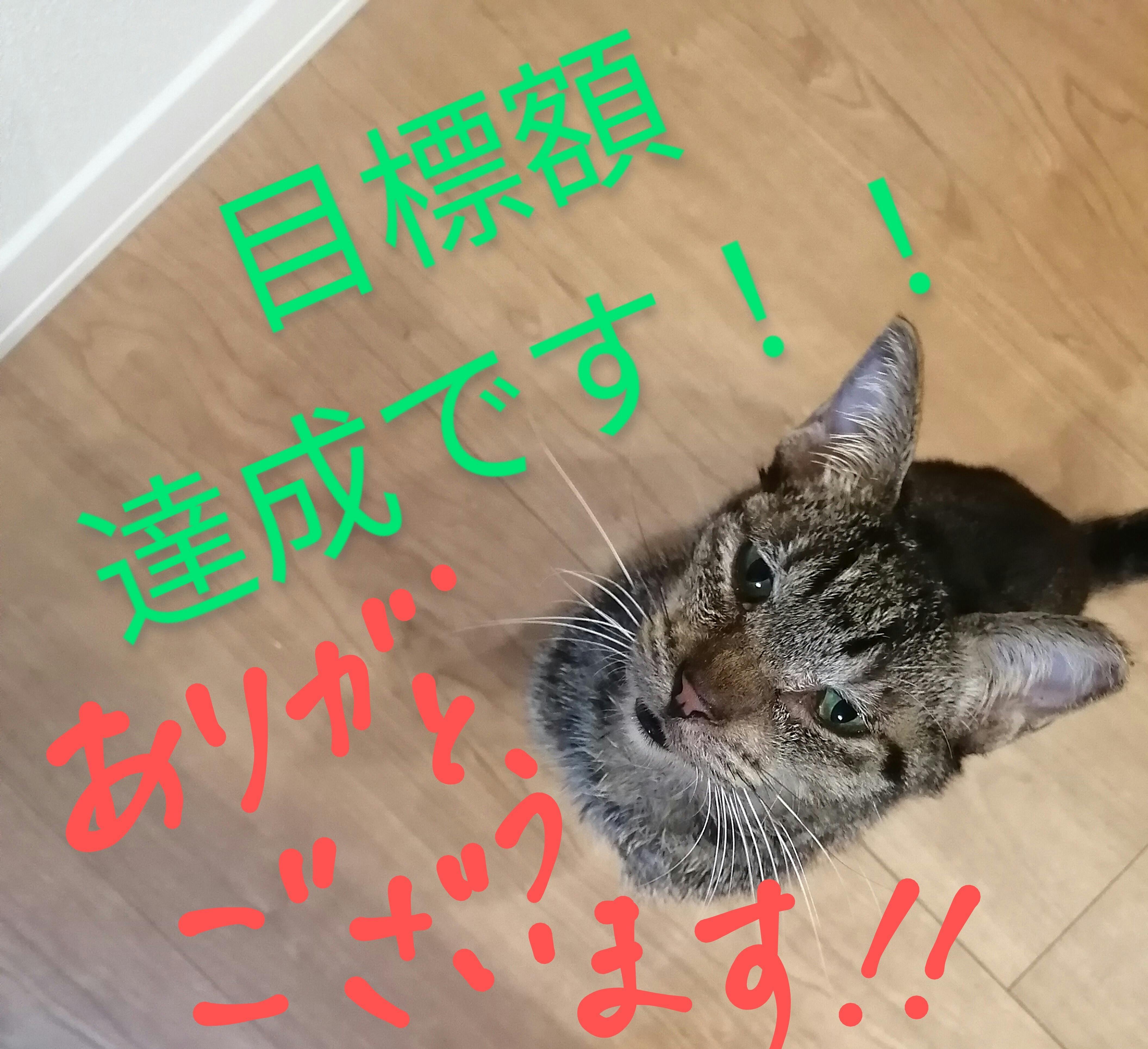 2020/10/31 18:48こんばんは。本日このクラウドファンディング募集最終日にして、皆様からの連日のご支援を受けて目標額達成に至りました。本当に本当にありがとうございます!!ご支援くださった方々、プロジェクトを拡散してくださった方々、励ましのメッセージをくださった方々、皆様のおかげで猫ちゃんの治療・入院費全額のご支援を受けることができます。金銭的にご支援をいただきましたぶん、私は猫ちゃんのお世話を精一杯続けていくことで皆様の御厚意に応えていきたいと思います。プロジェクトは本日24時に終了します。明日以降になりましたら、リターンにございます「御礼のメッセージ」と「猫ちゃんの名付け」に関するメールを送らせていただきます。本日は取り急ぎ、目標額達成のご報告をいたしました。皆様本当にありがとうございました!!!!! もっと見る