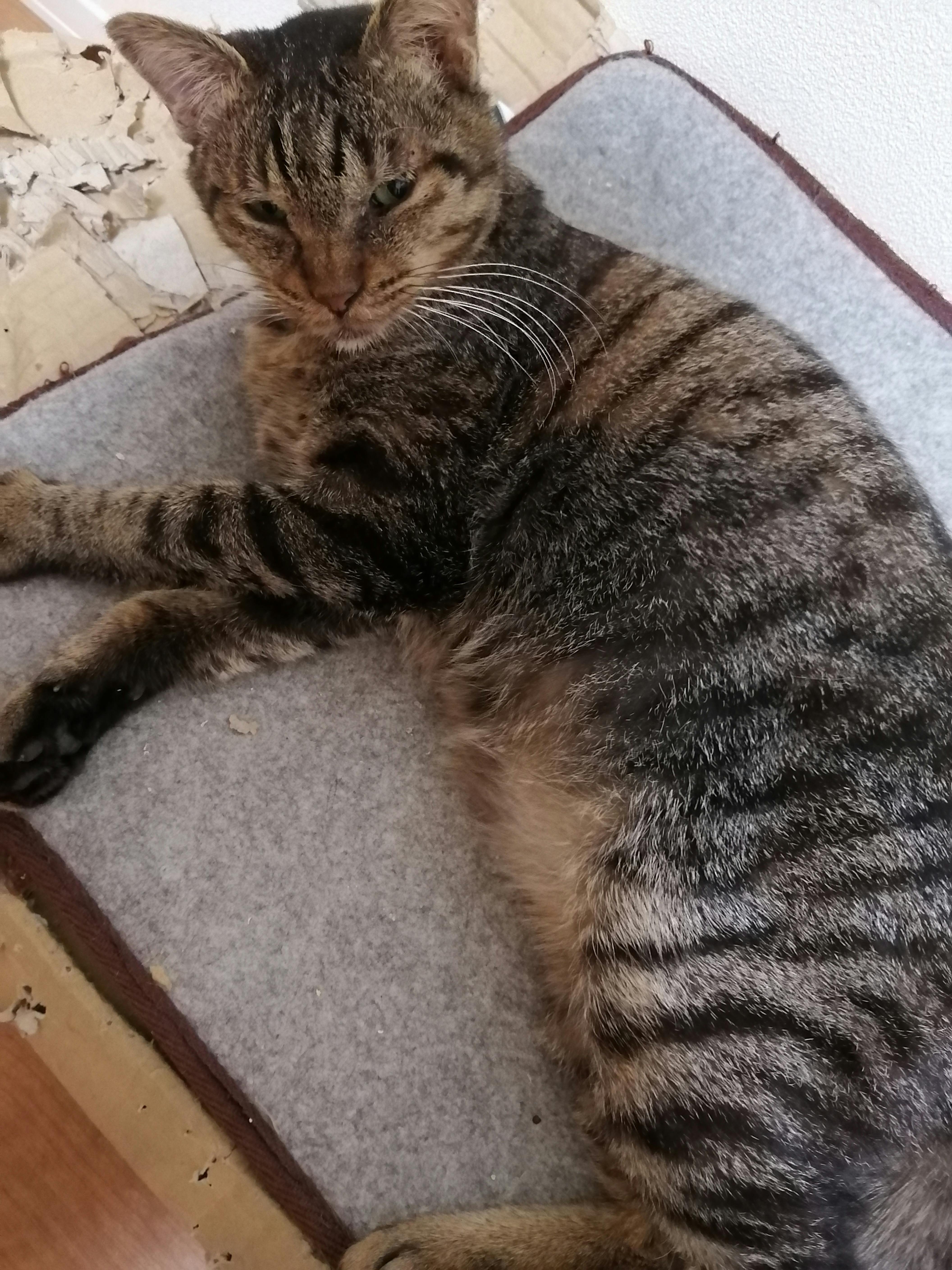 2021/02/03 21:33ご無沙汰しております。昨年は猫のげんちゃんに沢山のご支援をいただき本当にありがとうございました。10月31日にプロジェクトの募集が終了して、11月には「げんちゃん」という素敵なお名前を付けていただきました。その後、里親募集をかけているもののご縁がなく、げんちゃんは今もkiji_fight宅で暮らしています。げんちゃんは筋肉ムッチリのいい体つきになり、毛並みもフワフワで、皮膚病を除けばとても元気です!段ボール梱包に使われている平べったい紐を追いかける遊びが好きで、きょうも明け方からセルフ運動会をして盛り上がっていました。残念ながら皮膚病がまだ治っておらず、服薬治療→治まって様子見→しばらくして再発→服薬治療…を繰り返していて今4周回目くらいです。治まってから再発するまでのスパンが徐々に長くなっているので、再発しなくなるまで根気よく通院してまいります。今日はちょうど服薬治療の終わり際で、皮膚がとても落ち着いている時期です。気持ちよさそうにくつろいでいたところを写真に収めました!先週から、獣医さんの薦めで皮膚バリアを高めるための療法食を始めました。これから効果が出てくるといいなと期待しています。また、不定期でげんちゃんの様子をご報告します。コロナの流行も収まらない中、季節の変わり目がやってきますね。皆様どうかお体に気を付けてお過ごしくださいませ!! もっと見る