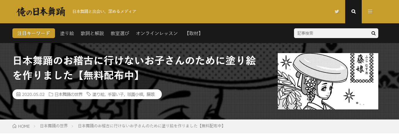 ▶当時の記事です「日本舞踊のお稽古に行けないお子さんのために塗り絵を作りました【無料配布中】」