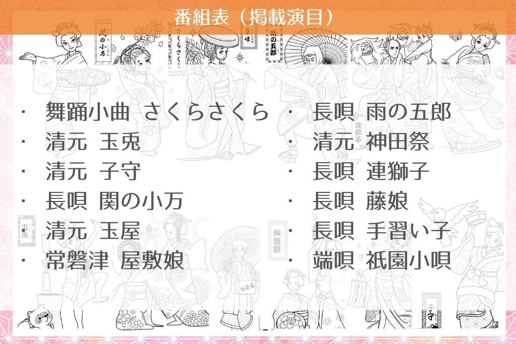 解説は最低限にとどめました。日本舞踊教室では、詳しい説明をぜひ先生から直接お子様・親御様へしてあげて下さい。