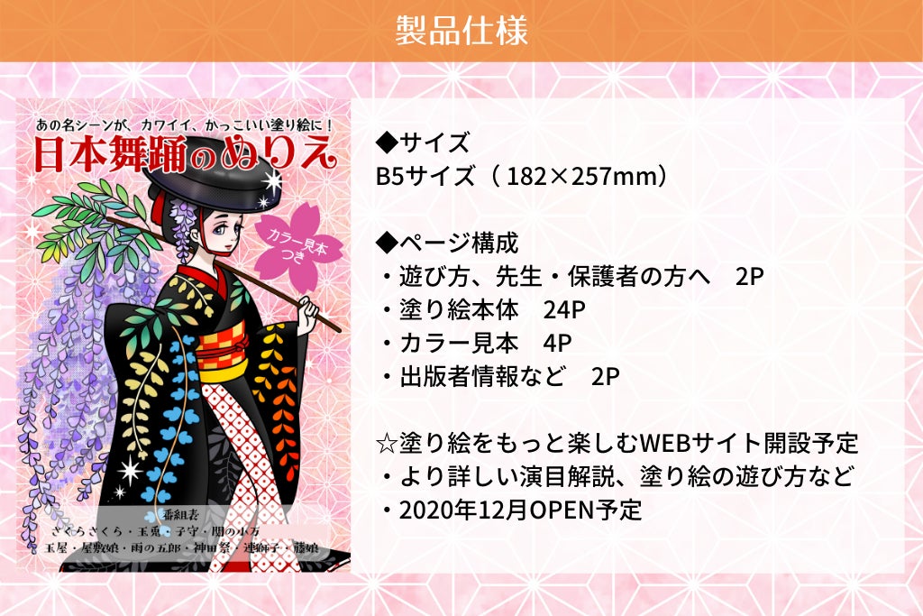 もっと詳しく知りたい方や、塗り絵の塗り方を知りたい方は、日本舞踊のぬりえ特設WEBサイト(2020年12月15日公開予定 リリース予定)をご覧ください。演目や衣装などの詳しい解説、塗り方講座などを見ることができます。