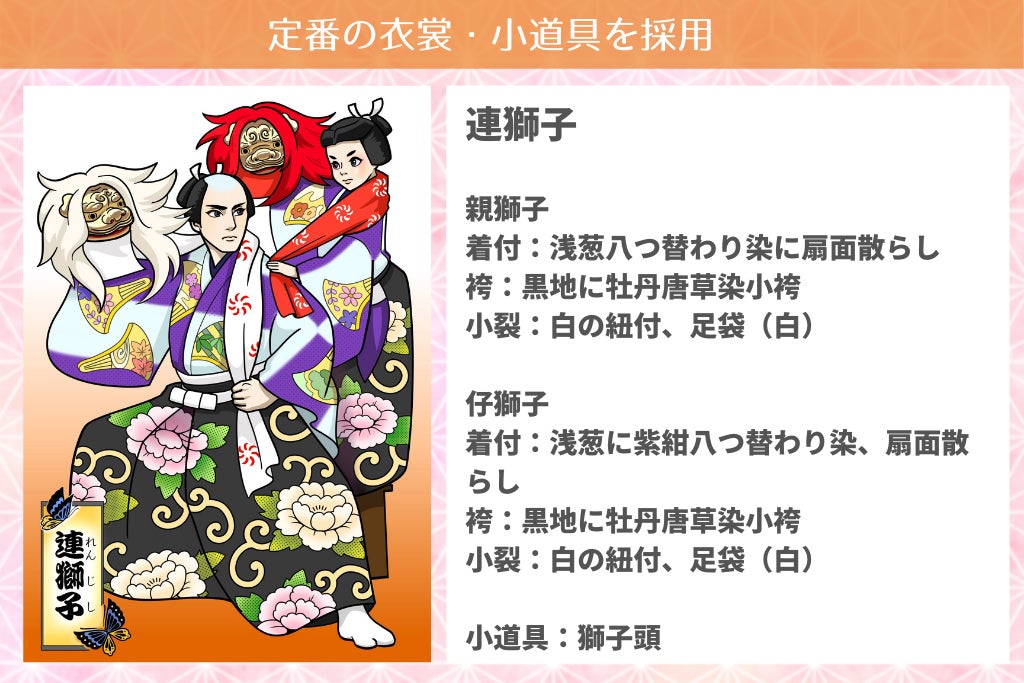 美しい着物柄、楽しい小道具、多彩な演目と登場人物で、子供たちを飽きさせません。
