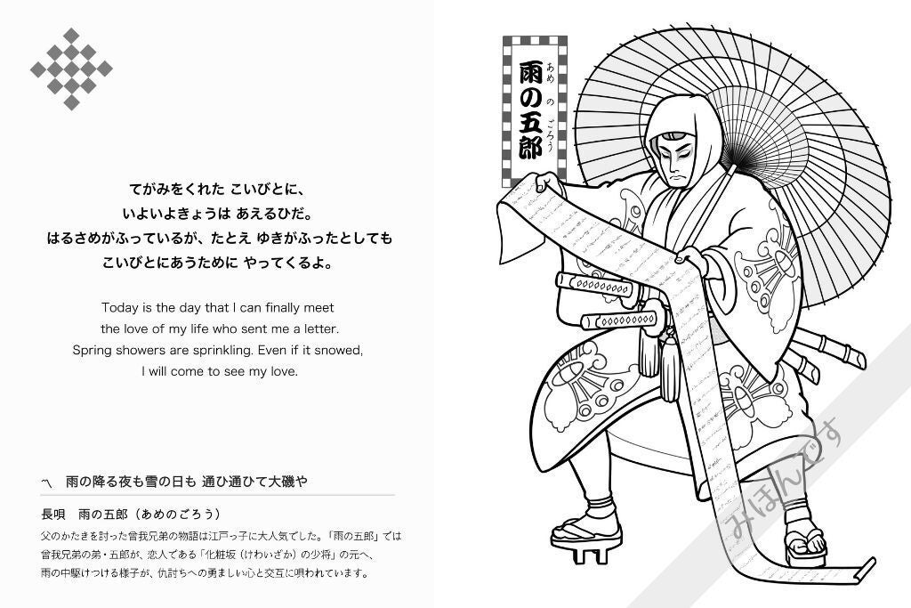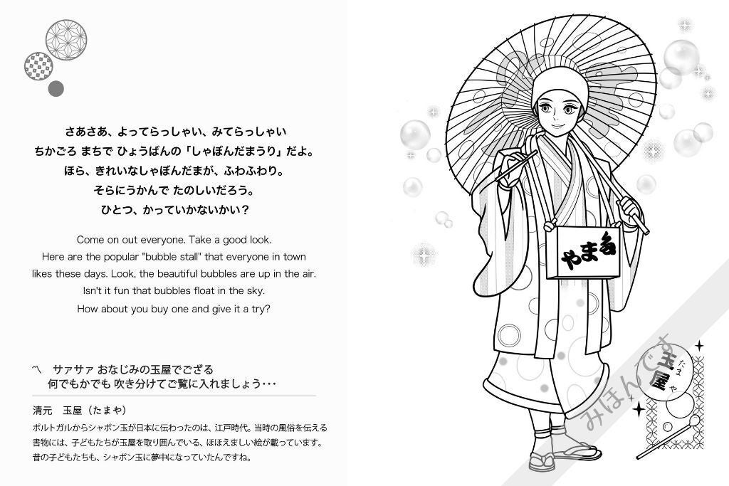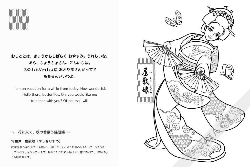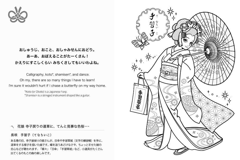 塗り絵は手を動かして絵や色彩感覚を学ぶ、とても良い教材でもあります。伝統の色、文化に触れながら、おうちでも楽しく遊んでほしい。この塗り絵をきっかけにお稽古場やご家庭で、いろんな会話が生まれていたり、お子さんが褒められていたり・・・そんなシーンをイメージしながら制作しました。このぬりえが一人でも多くの子どもたちに届きますように。