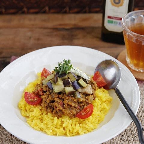 ハイオレイン酸ひまわり油を使ったレシピ(コロコロなすのキーマカレー)
