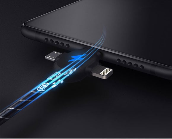 Micro USB、Lightning、type-C、3つのポートを搭載、ほぼ全てのiOSやAndroidなどの設備に対応できます。これ1本でUSB機器の充電、パソコンとのデータ通信など、幅広く使えます。