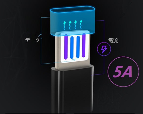 5A充電ケーブルは、標準タイプのケーブルより高速に充電することができ、優れた性能により、高速転送速度で、デバイスの同期と充電を同時に行うことができます。データ転送は、480MBまで可能です。※充電時間は電圧の出力量により異なります。