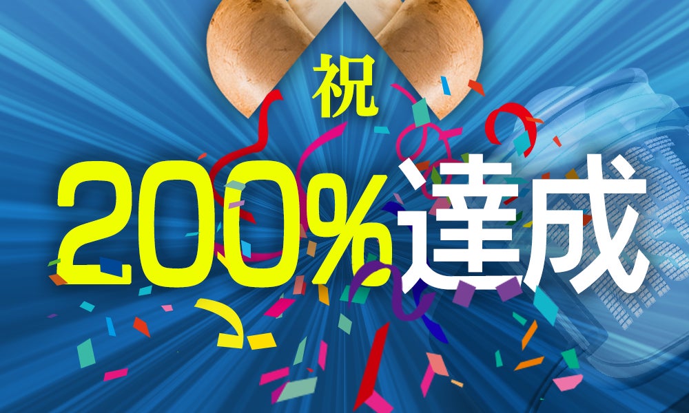 まさかの200%達成です!!本当に皆様には感謝しかありません。本当にありがとうございました!!ここまできたら次は300%を目指していきたいと思います!!