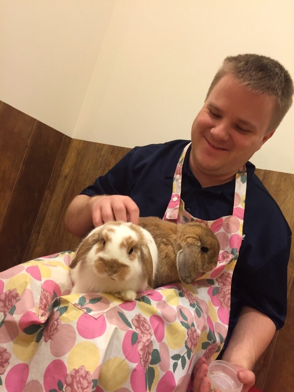 うさぎさんを飼ったことがある方はもちろん、触ったことのない方でも安心して楽しんでいただけるよう、それぞれのお客様の気持ちに寄りそった接客を心がけ、皆さんがうさぎさんとの楽しいコミュニケーション体験をしていただけるよう努めています。