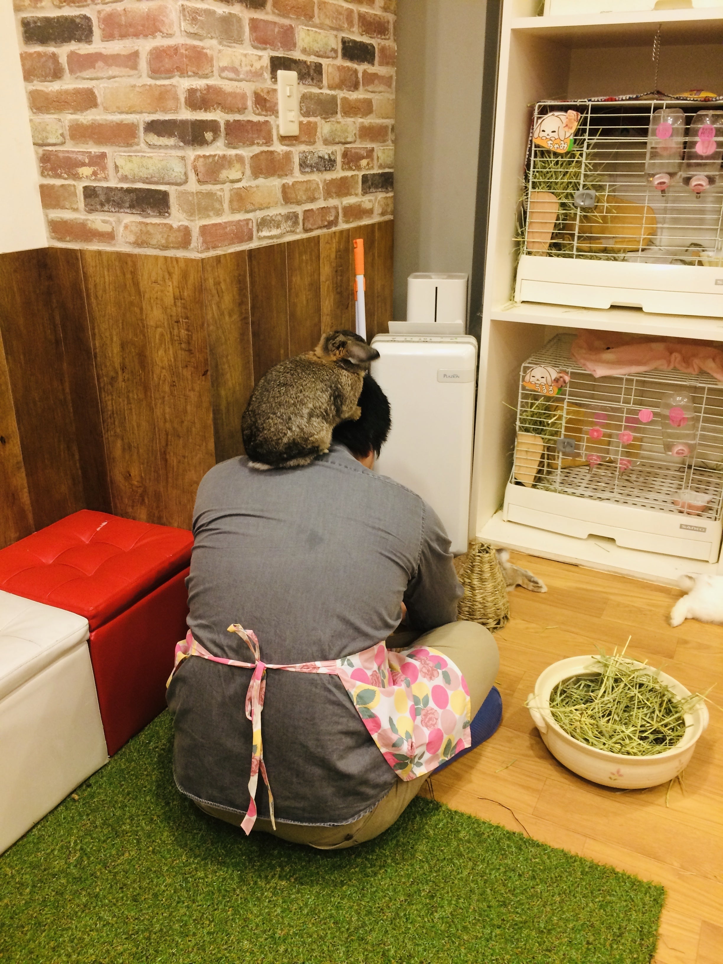 おひざの上や背中の上などに乗ってきてくれることも多々あるので、うさぎさんの人懐っこさに驚かれる方もいます。