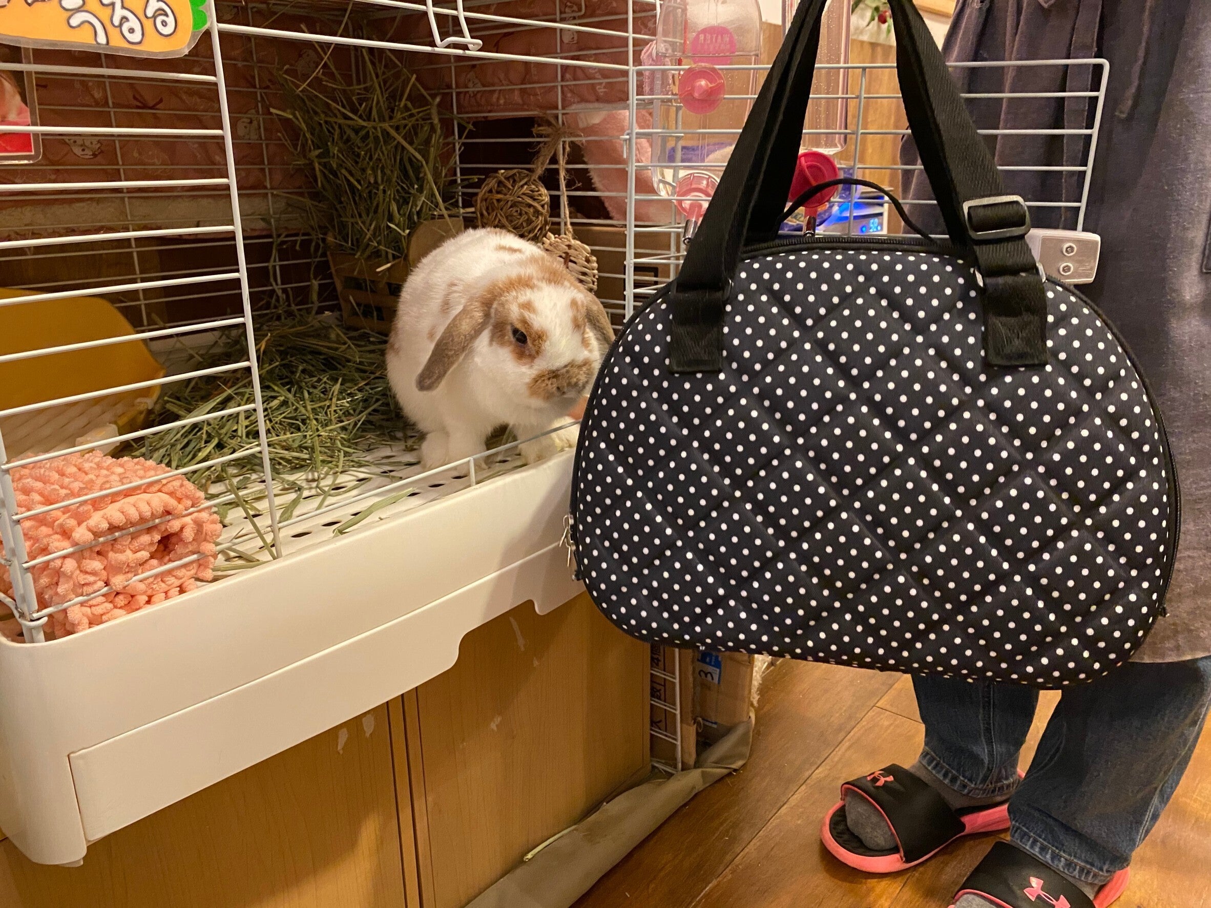 2021/05/06 12:17通院のキャリーバックも傷んでいたのでお約束品のキャリーバックを新調しました!通院回数も多くなってきたので通院時の負担を考えて移動しやすいうさちゃんに快適なバックを選びました!さっそくひまりちゃんの通院時に使用しましたが、移動の揺れも軽減できて、小柄なひまりちゃんもこんな感じにすっぽり入って落ち着いていました。大切に使わせて頂きます。ご支援頂いたみなさまありがとうございました! もっと見る
