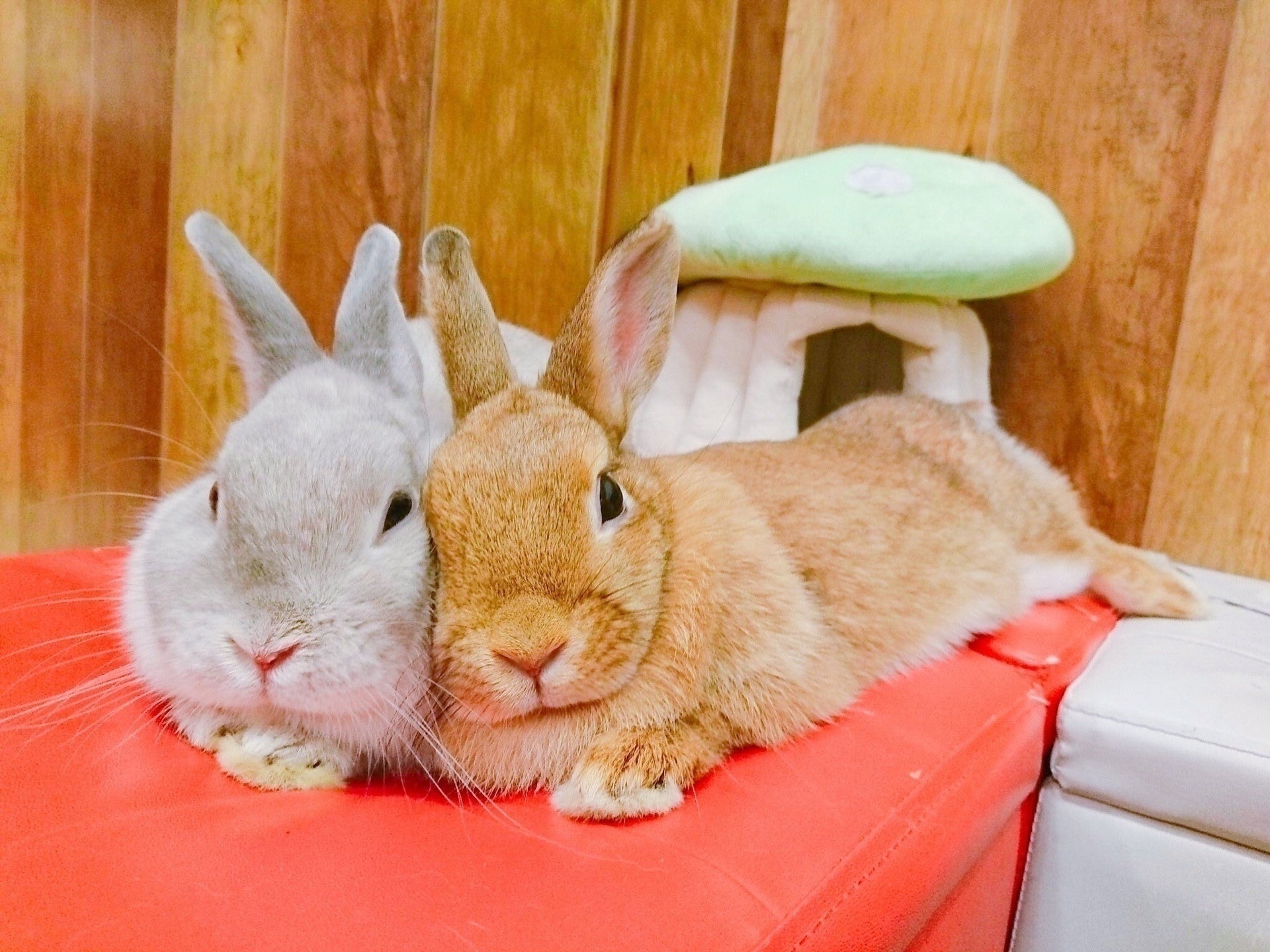 うさぎさんは縄張り意識が強く、同じ場所に複数のうさぎさんをいさせることが難しいともされています。当店では幼少期からお迎えをし、それぞれの性格をみきわめ、うさぎさんに寄りそったお世話をすることで、複数のうさぎさんといっぺんに触れ合っていただけます。