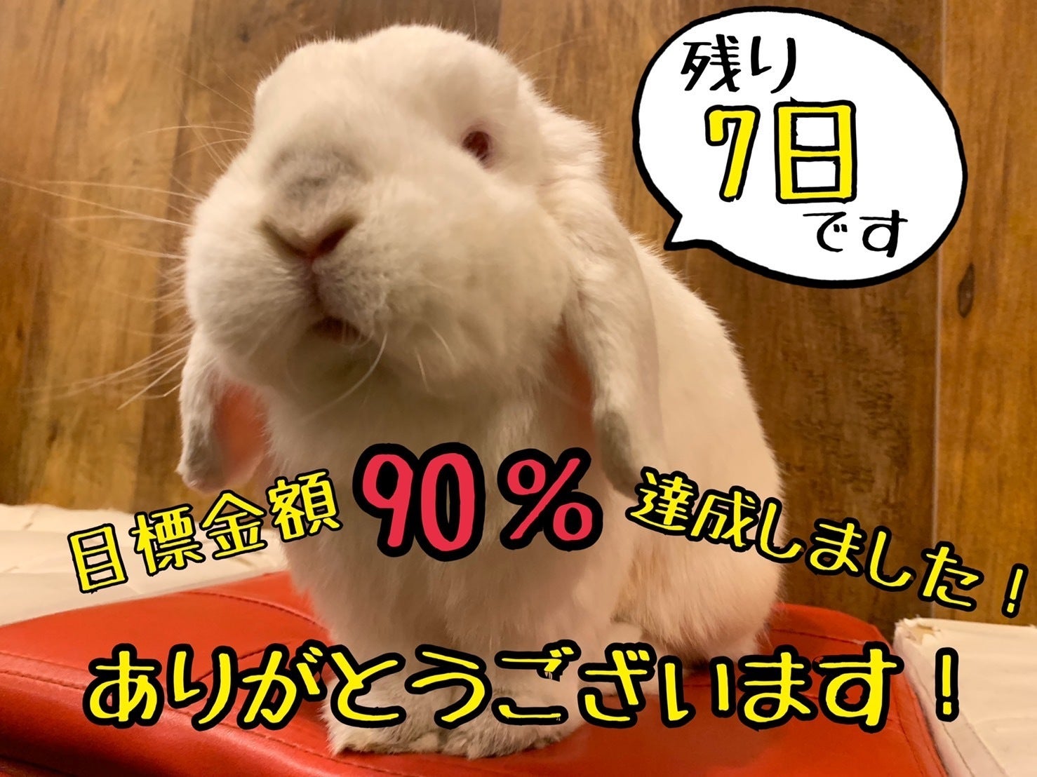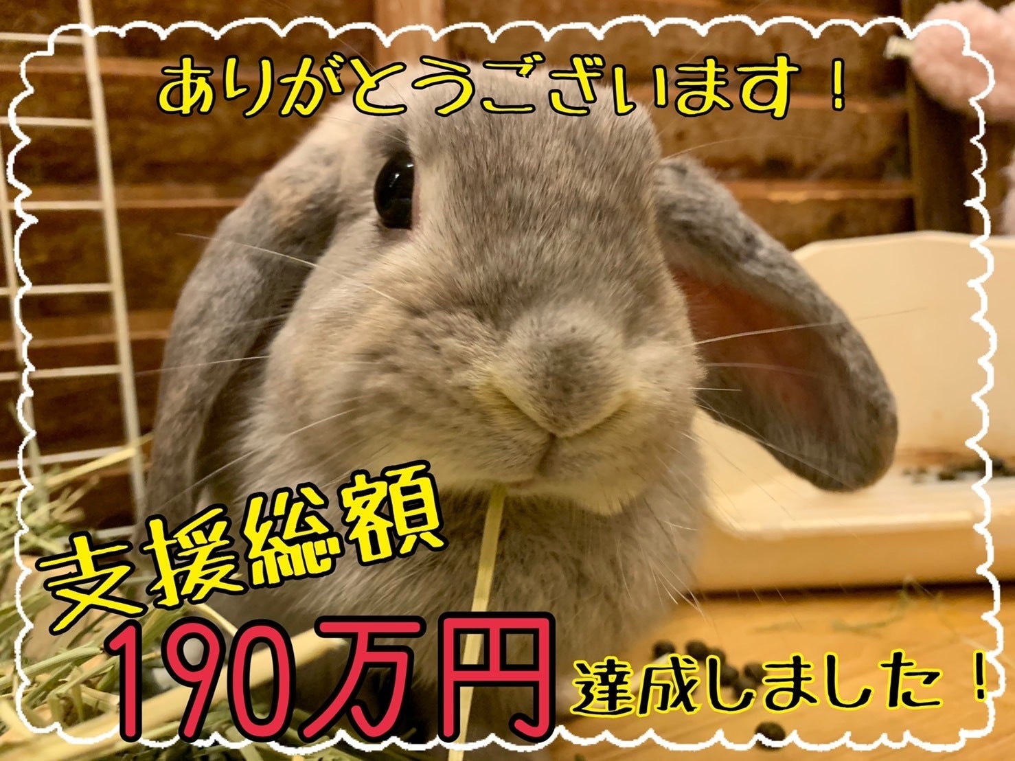ありがとうございます!目標金額も現状92%達成しました!この1日で更に支援総額182万円。支援者209人の方にお力をいただいています!終了まで残り7日間。たくさんの方々にSNS上で、お店のうさぎさんの紹介や拡散のお願いをしていただいているのを感謝している毎日です。ありがとうございます。