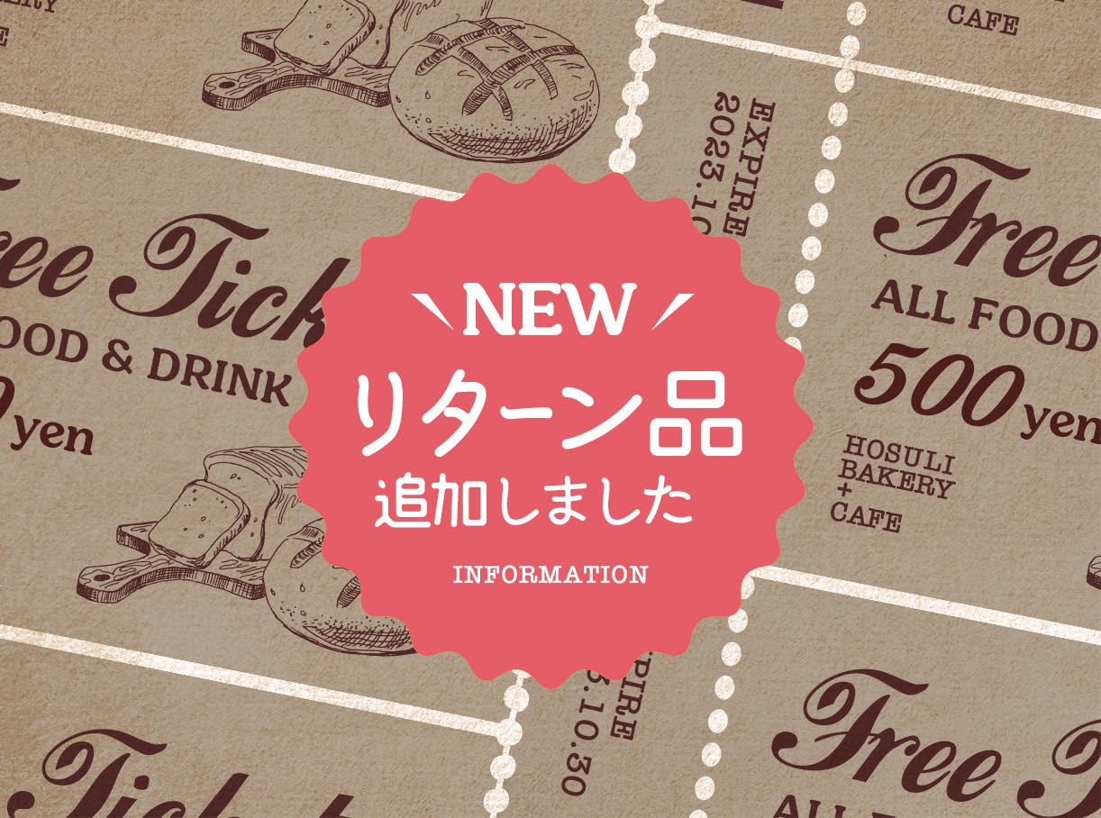 また、パン職人のさっちゃんと話し合い、さらにもっとhosuli bakery+cafeを知って貰えるような、ご利用頂けるような、リターンプランを追加致しましたので御覧頂けたらと思います。