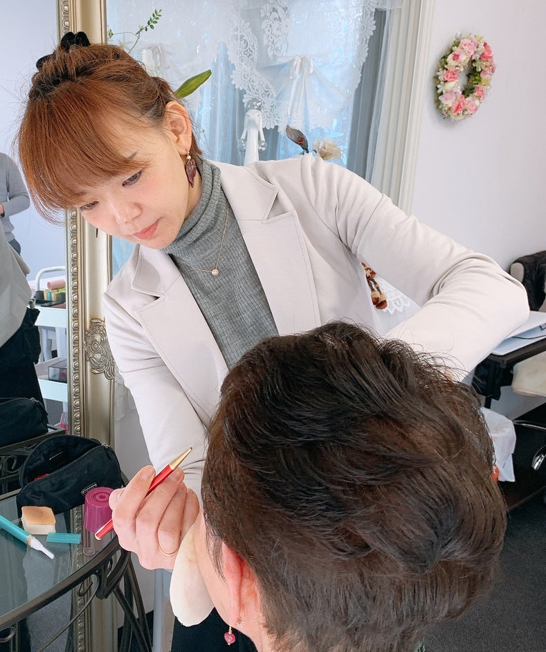 ②『高齢者を元気に』を合言葉に、専門スタッフによるヘアセット・メイクからフィッティングまでをセットにした出張シンデレラ体験サービスを行っています。