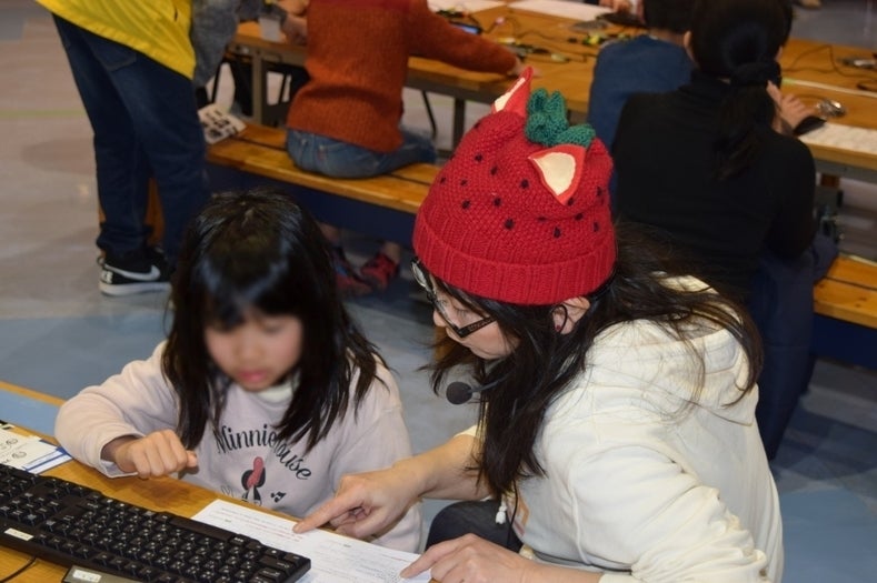 現在は県内外でプログラミングやロボットイベントを行い、教室では授業以外にも電子工作やプログラミングコンテスト出場など子供たちがいろんな体験やチャレンジができるようサポートしています。(イベントではイチゴの赤い帽子をかぶっています)