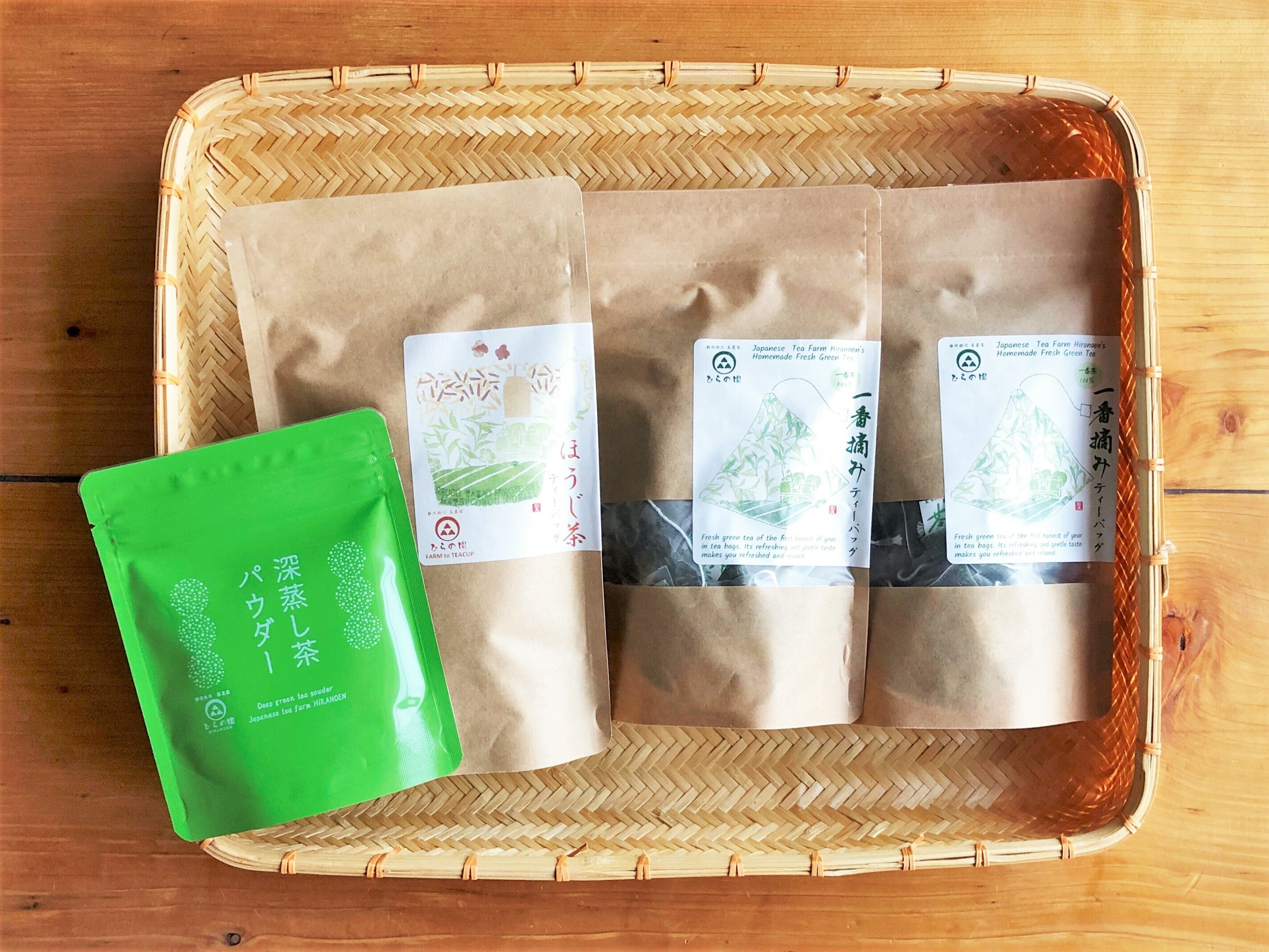 ひらの園の主力商品をお送りし、お茶を飲んでいただきながら、ホームページ、SNS、お茶のサイズ感やパッケージ、味の印象など、ご感想やアドバイスを送っていただき応援していただくコースです。