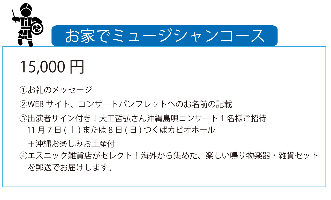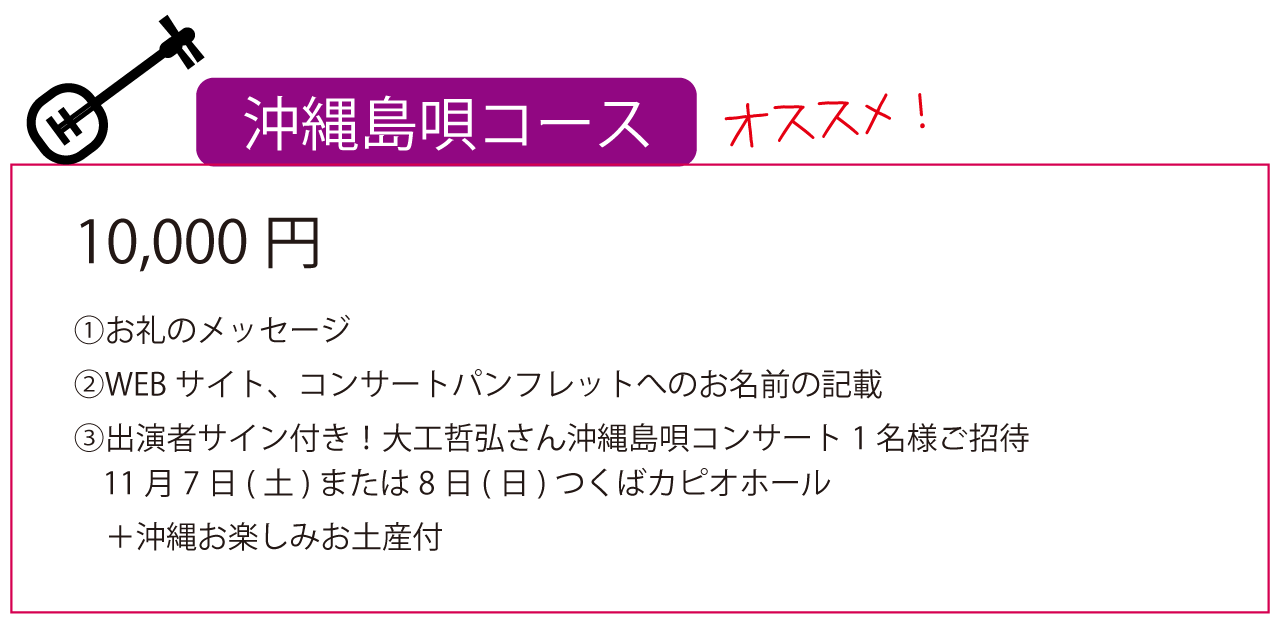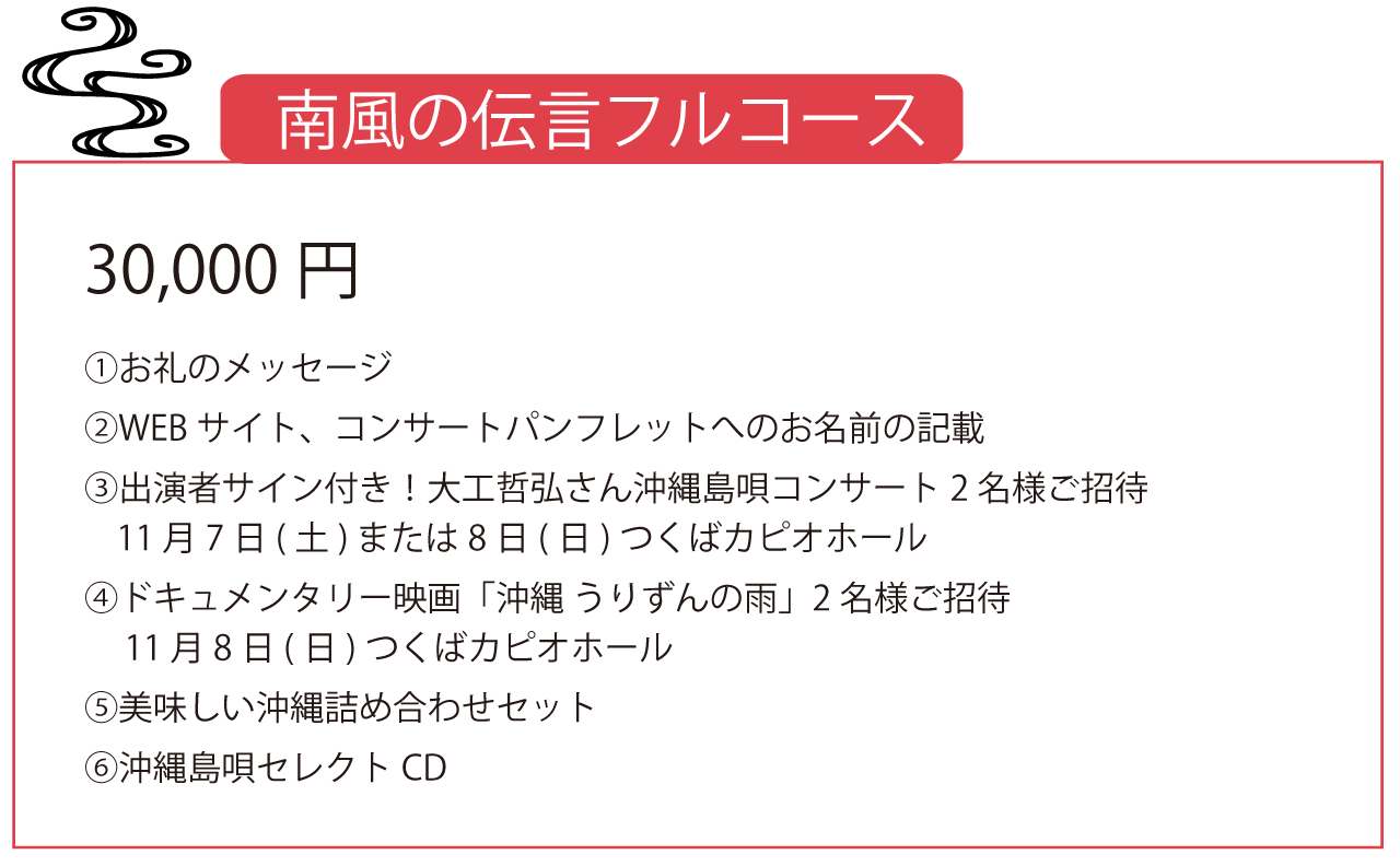 南風の伝言2020オススメのコースです。本場の島唄を聴かなければ沖縄を語れません。大工哲弘さんの貴重なライブコンサートにご招待!指定席でご用意させていただきます。
