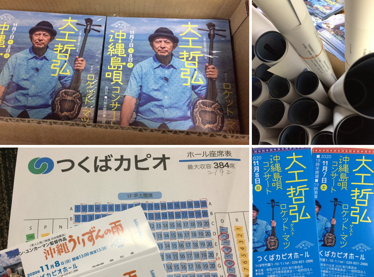 2020/10/15 01:27暖かいご支援と応援メッセージありがとうございます!美術展終了後、あまりの怒涛の準備〜搬入で、さすがにスタッフも放心状態となっておりましたが、皆様の応援に元気付けられ、次の大工哲弘さんのコンサートに向けて新たに宣伝&準備中を進めています!コロナの影響を心配しておりましたが、美術展の方も本当にたくさんの皆様にご来場いただきました。アンケートやメッセージも数多くいただき、開催した意味や、それぞれが沖縄や作品と向かい合う深い内容のものばかりでいろいろ考えさせられました。準備で大変なこともありましたが、皆様のおかげで素晴らしい展覧会を開催することができました。ありがとうございます。そして大工哲弘さんのコンサートがいよいよです!延期や開催の有無などで、かなり遅れてしまいましたが、チラシ、ポスター、チケット、と続々納品され、ただ今、チラシ・ポスターの掲示のお願いに回っています。現在、公共施設やカフェなどの店舗、沖縄関係のお店にもチラシをあちこち置かせていただいたり、新聞社などにも紹介のお願いをしています。今年はコロナの影響もあり、普段なら毎週行っていたスタッフのミーティングも全てリモート、動けるスタッフも少なく、なかなか大変ではありますが、皆さんのご支援に支えられています。沖縄関係の皆さんは本当に暖かいですね。だんだんコンサートと映画の開催が近くなってきて本当に楽しみです。席数は半分になっていますが、ぜひ多くの皆様にご来場いただけますように、宣伝して参りますので引き続きどうぞよろしくお願いします。 もっと見る