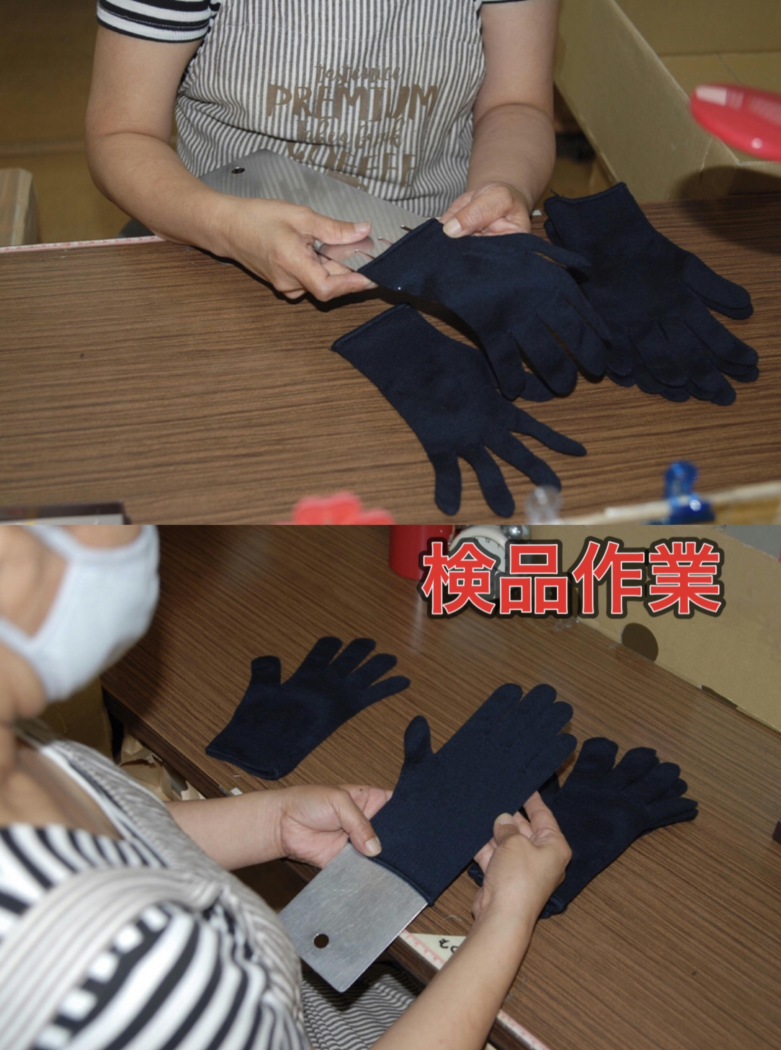 糸の会社、編む会社、そして弊社加工業がタッグを組んで今、本当に安心で安全な、生活に少しでも役立てるものとして、今回、この抗ウィルス加工糸で編んだ手袋を開発、製品化しました。